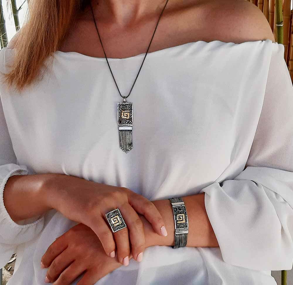 ΒΡΑΧΙΟΛΙ ΧΕΙΡΟΠΟΙΗΤΟ, ΑΣΗΜΙ 925 , ΜΕ ΦΥΛΛΟ ΧΡΥΣΟΥ 14k , ΠΕΤΡΑ ΓΡΑΝΑΔΑ (GARNET) Στις παρακάτω φωτογραφίες είναι ολόκληρο το σετ .