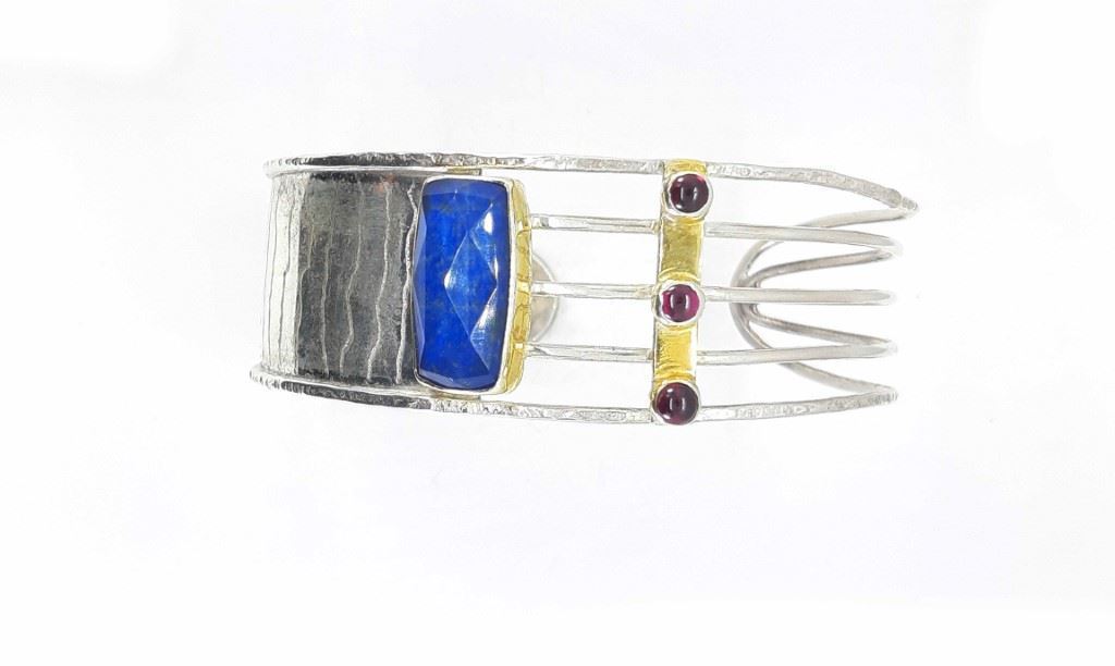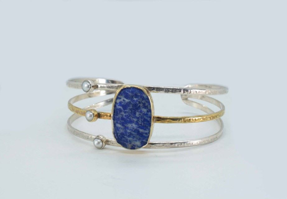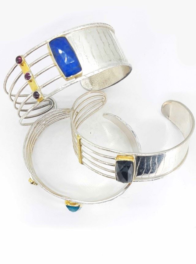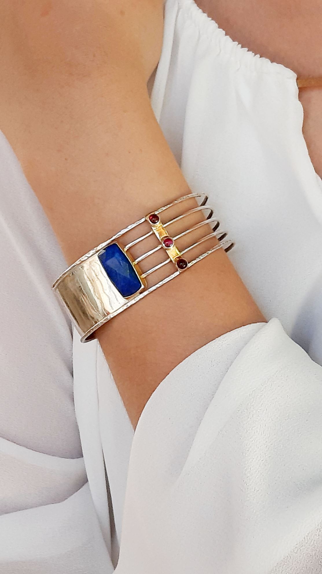 Ασημένιο χειροποίητο βραχιόλι 925 τα επιχρυσωμένα μέρη είναι 18k .Σε μεγάλη ποικιλία ορυκτών και ημιπολύτιμων λίθων.