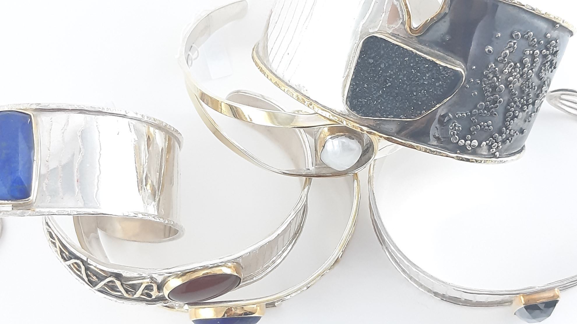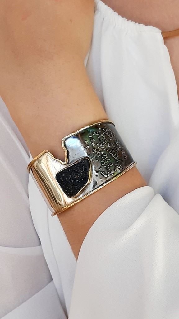 Ασημένιο χειροποίητο βραχιόλι 925 τα επιχρυσωμένα μέρη είναι 18k .Σε μεγάλη ποικιλία ορυκτών και ημιπολύτιμων λίθων.
