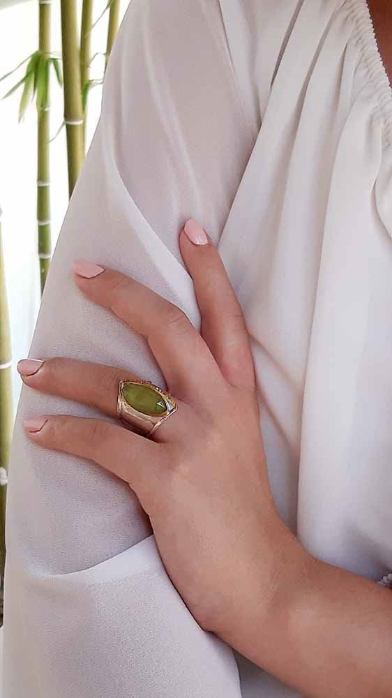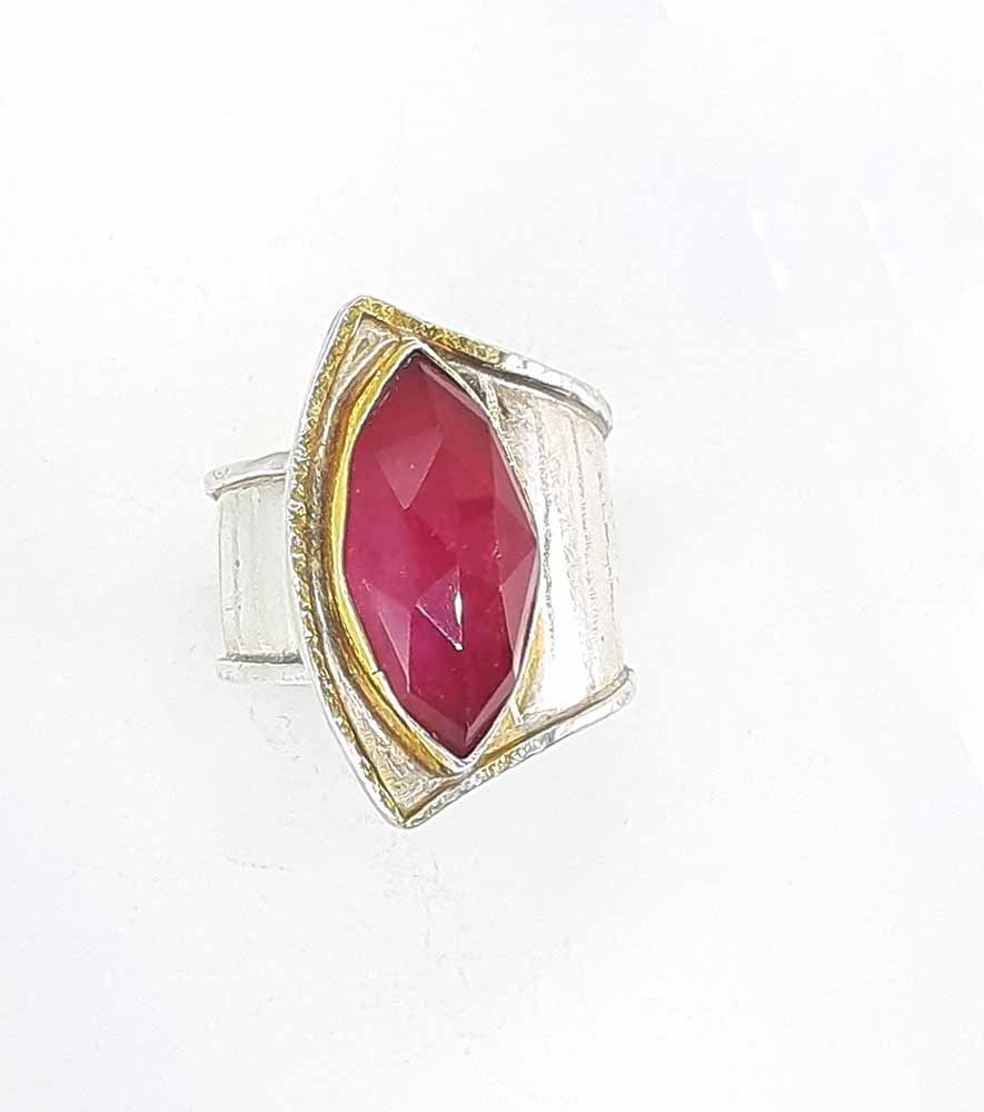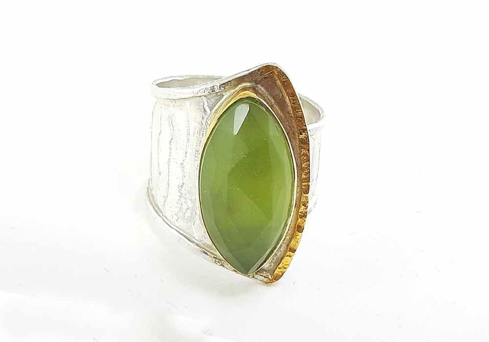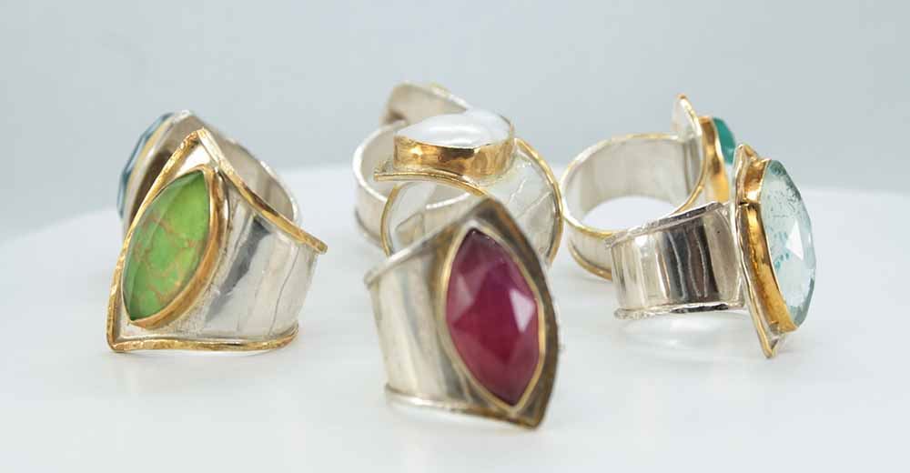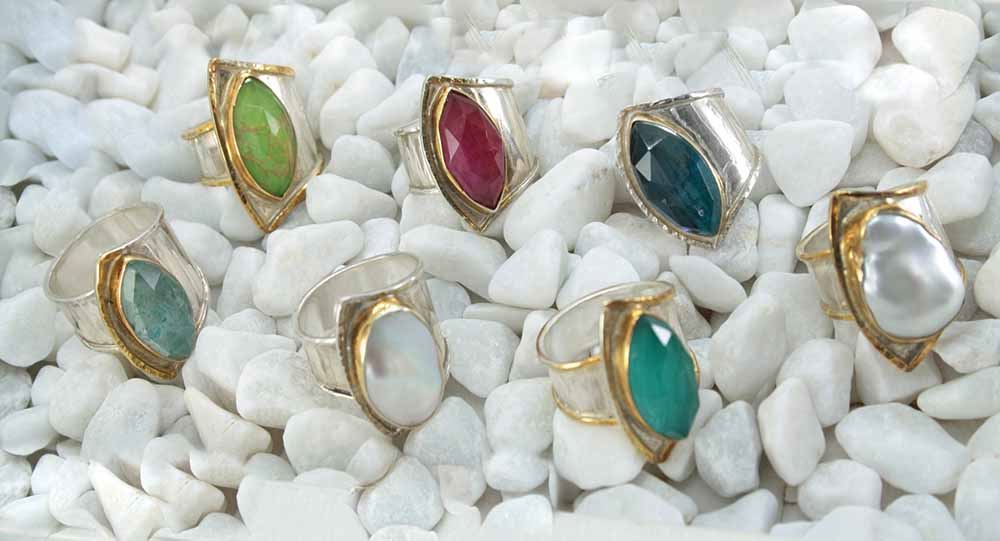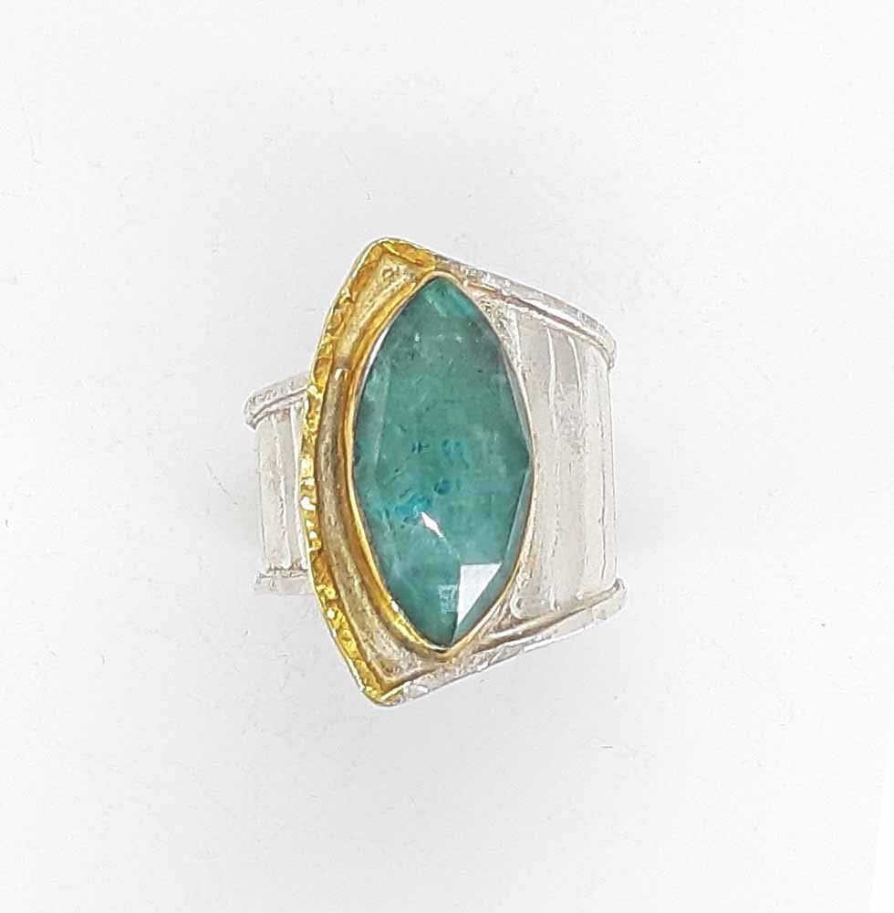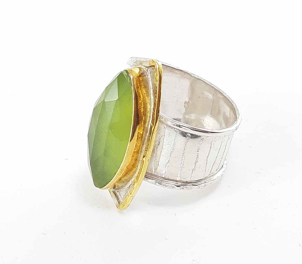 Ασημένιο χειροποίητο δαχτυλίδι 925 τα επιχρυσωμένα μέρη είναι 18k . Σε μεγάλη ποικιλία ορυκτών και ημιπολύτιμων λίθων.