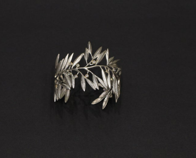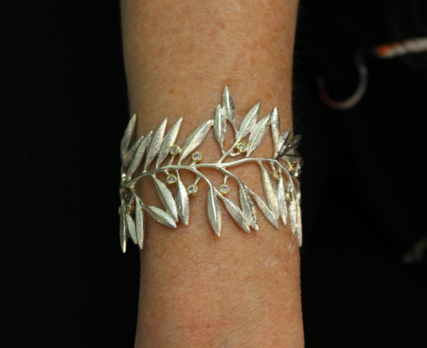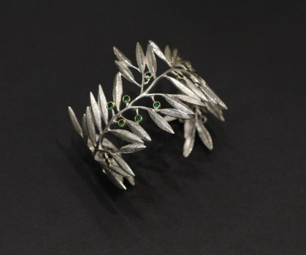 Βραχιόλι χειροπέδα ασήμι 925 με πέτρες σχέδιο ελιά