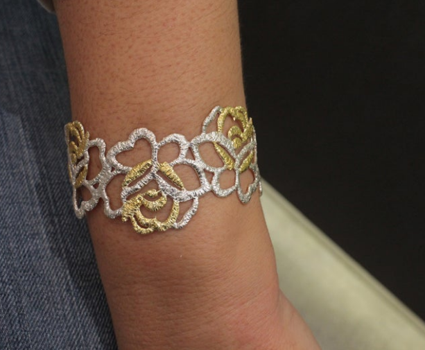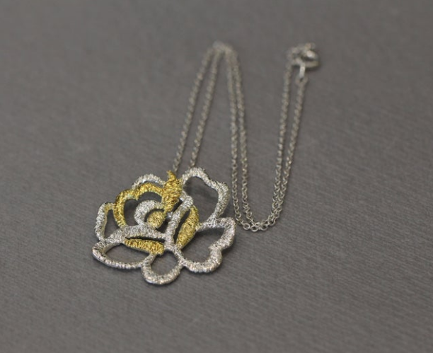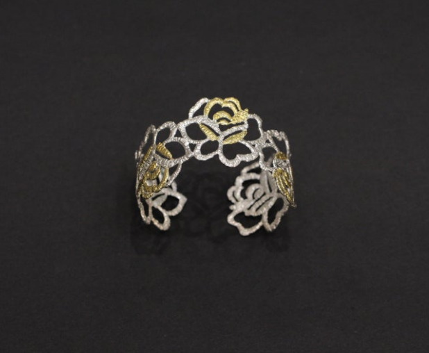 Βραχιόλι χειροπέδα ασήμι 925 με επίχρυσες λεπτομέρειες σχέδιο τριαντάφυλλο (στις φωτογραφίες συμπεριλαμβάνονται και τα υπόλοιπα κομμάτια του σετ)