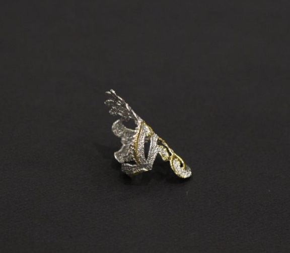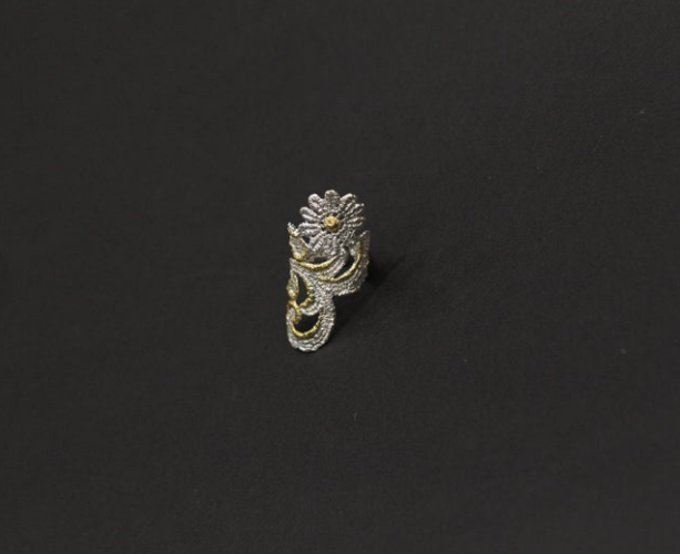 Δαχτυλίδι ασήμι 925 με επίχρυσες λεπτομέρειες σχέδιο ακανόνιστο με λουλούδι νούμερο ρυθμιζόμενο (στις φωτογραφίες συμπεριλαμβάνονται και τα υπόλοιπα κομμάτια του σετ)