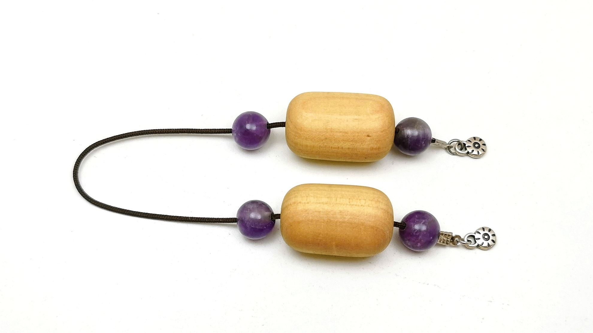 Χειροποίητο αρωματικό μπεγλέρι από Ελληνική Πορτοκαλιά, μέγεθος χάντρας 18x28mm, στολισμένο με Αμέθυστο 10mm και μεταλλικά στοιχεία. Παραδίδεται σε κουτάκι και συνοδεύεται με πιστοποιητικό έντυπο που περιγράφει τη διαδικασία κατασκευής του. Τα προϊόντα μας στη σειρά ‘χειροποίητο ξύλο’ είναι όλα από Ελληνικά ξύλα που έχουν μαζευτεί από την Ελληνική ύπαιθρο, μετά τοποθετήθηκαν σε σκιερό μέρος και σκεπάστηκαν με πριονίδι για περίπου 12 έως 16 μήνες αναλόγως το ξύλο, ώστε να αποβάλουν κάθε ίχνος υγρασίας!!! Μετά αρχίζει το τεμάχισμα και η χειροποίητη επεξεργασία μίας-μίας χάντρας σε τόρνο σμιλεύοντάς την με το χέρι!!! Αφού της δώσουμε το σχήμα, προχωράμε στο φινίρισμα, αυτό σημαίνει 5 ‘χέρια’ με διαφορετικό νούμερο γυαλόχαρτου και όταν η χάντρα μας είναι έτοιμη γίνεται επάλειψη με φυσικό κερί μέλισσας και αιθέρια έλαια!!! Το δέσιμο μπορεί να είναι με απλό μέταλλο ή με ασήμι 925 αναλόγως την επιθυμία σας,με επιπλέον το κόστος του ασημιού. Το κάθε μπεγλέρι είναι μοναδικό, δεν μοιάζει με κανένα άλλο ακόμα και από το ίδιο κομμάτι ξύλου!!! Όλα αυτά για να γνωρίζει ο κάτοχος ενός τέτοιου μπεγλεριού, τι κρατάει στα χέρια του!!! Λόγω της ιδιαιτερότητάς τους, όπως αντιλαμβάνεστε, είναι περιορισμένης παραγωγής!!! Τα διαθέσιμα αυτή τη στιγμή ξύλα είναι: Ελιά – Αμυγδαλιά – Βερικοκιά – Ακακία – Δρυς – Πουρνάρι – Βελανιδιά – Κουμαριά – Σκίνος – Αγριελιά – Κουτσουπιά – Μουριά – Πορτοκαλιά – Βίδι – Ευκάλυπτος – Καρυδιά – Ιτιά – Κερασιά – Κυπαρίσσι.