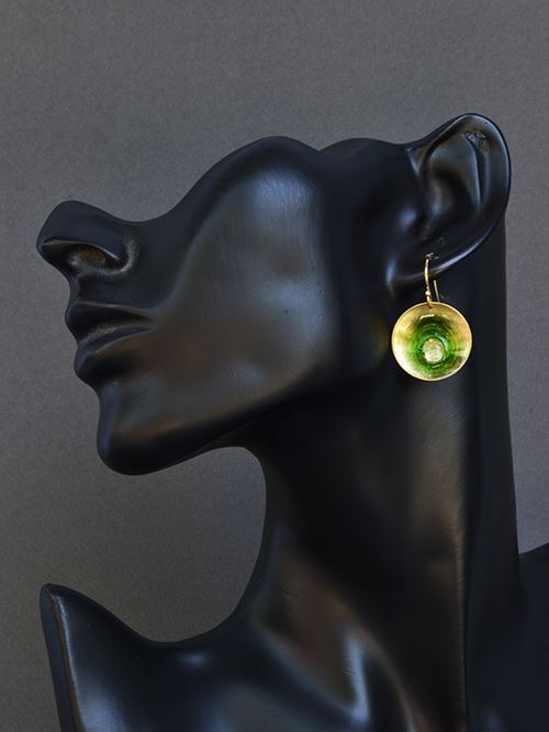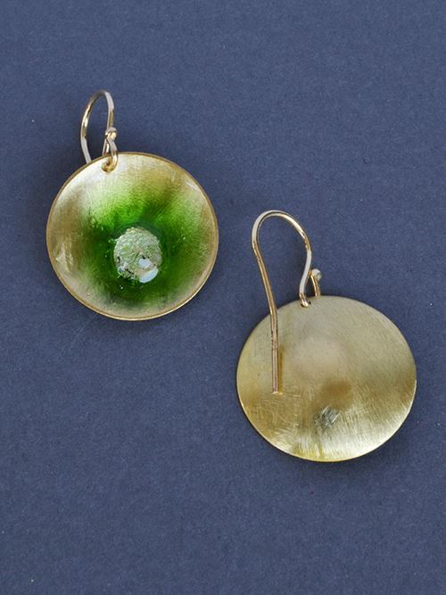 Handmade earrings of brass, resin and fused glass. Diameter: 2cm. Gold plated hook. They can be made of silver 925.