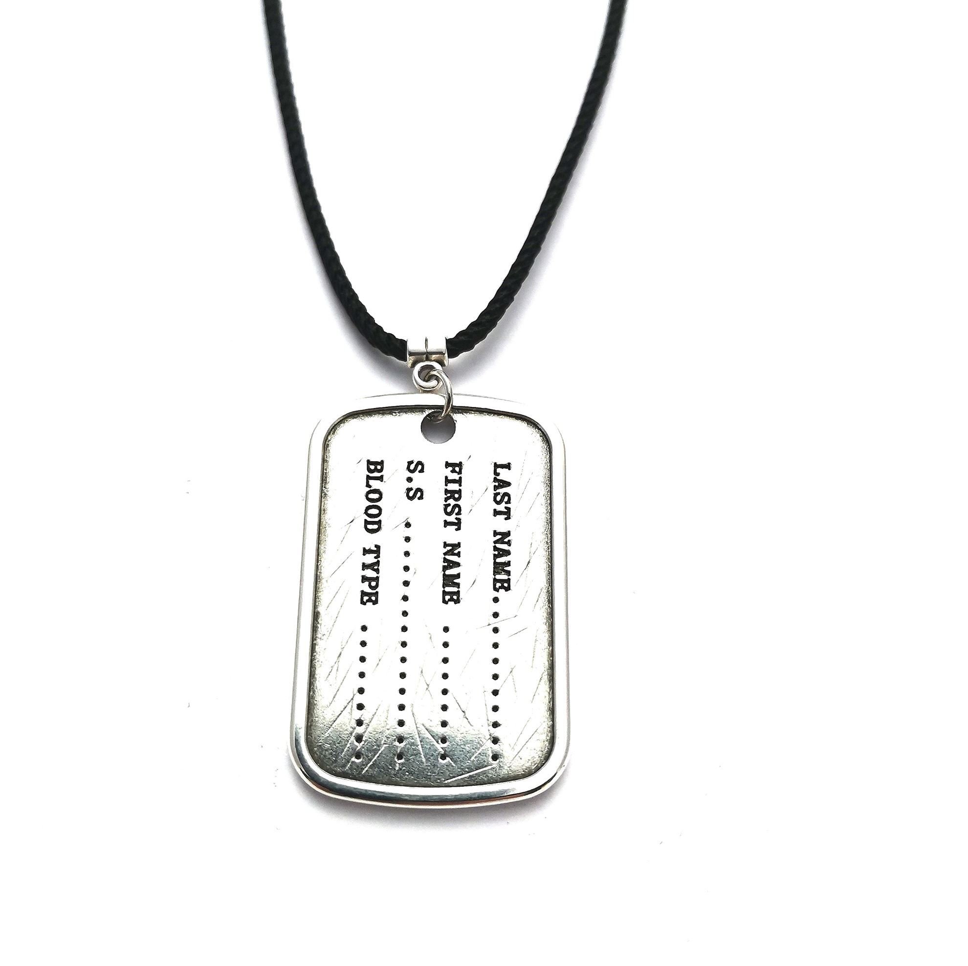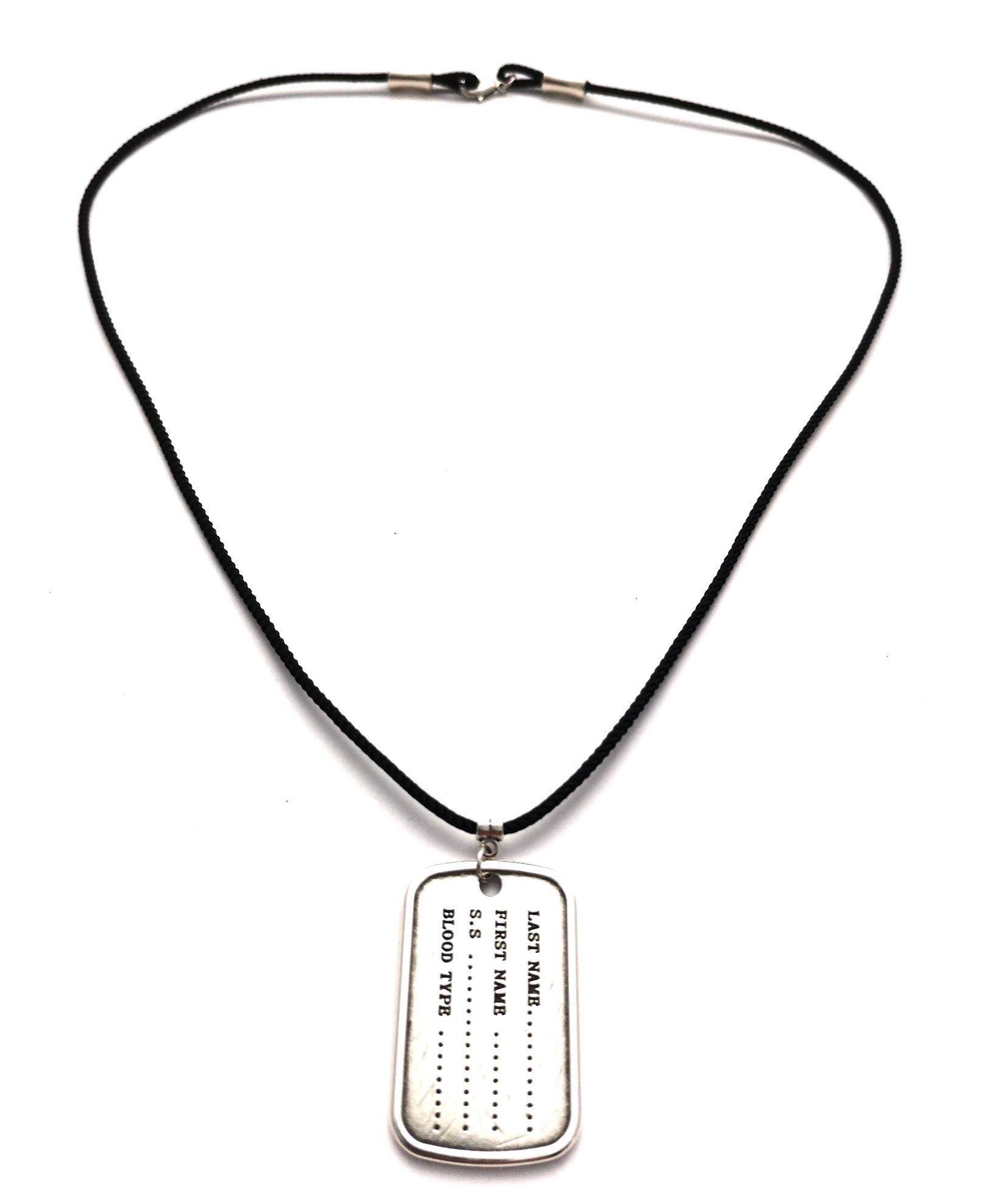 Ανδρικο κολιέ με στρατιωτική ταυτότητα από επάργυρο ορείχαλκο σε μαύρο κορδόνι, μήκος 60 εκατοστά.