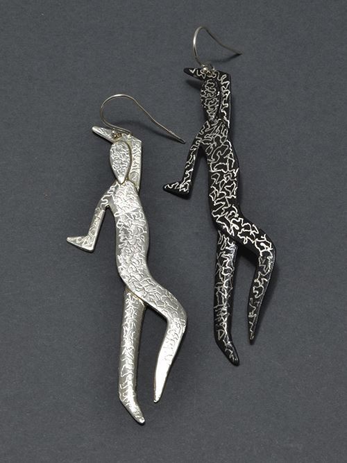 Ασημένια χειροποίητα σκουλαρίκια, ύψος 8,5cm και πλάτος 2cm. Το ένα έχει οξειδωθεί με μαύρη πατίνα.