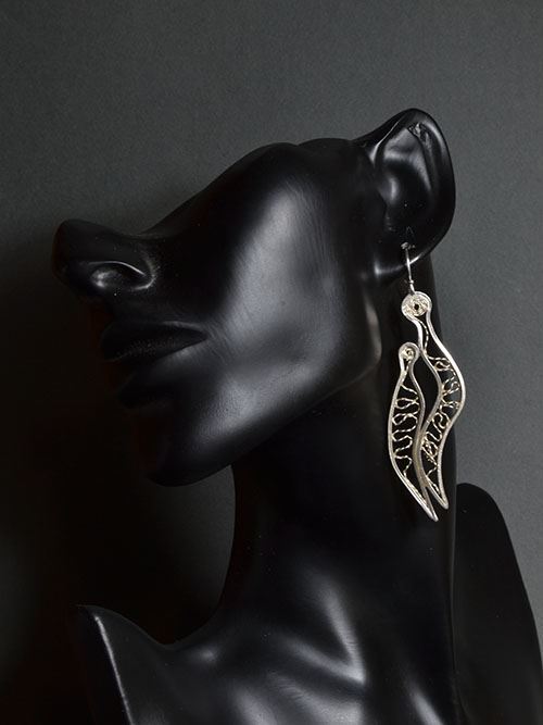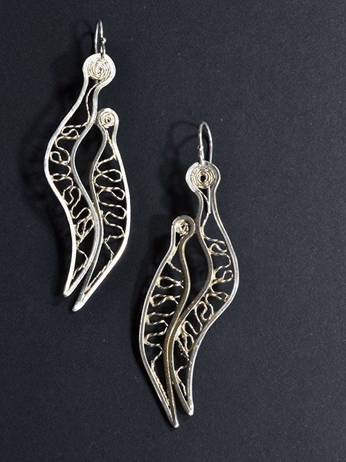 Ασημένια 925 χειροποίητα σκουλαρίκια με τεχνική φιλιγκρί, ύψος 7cm και πλάτος 2cm.