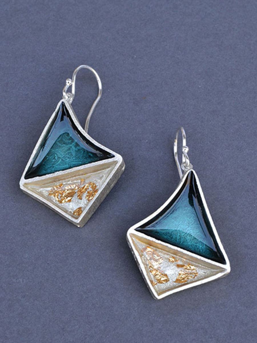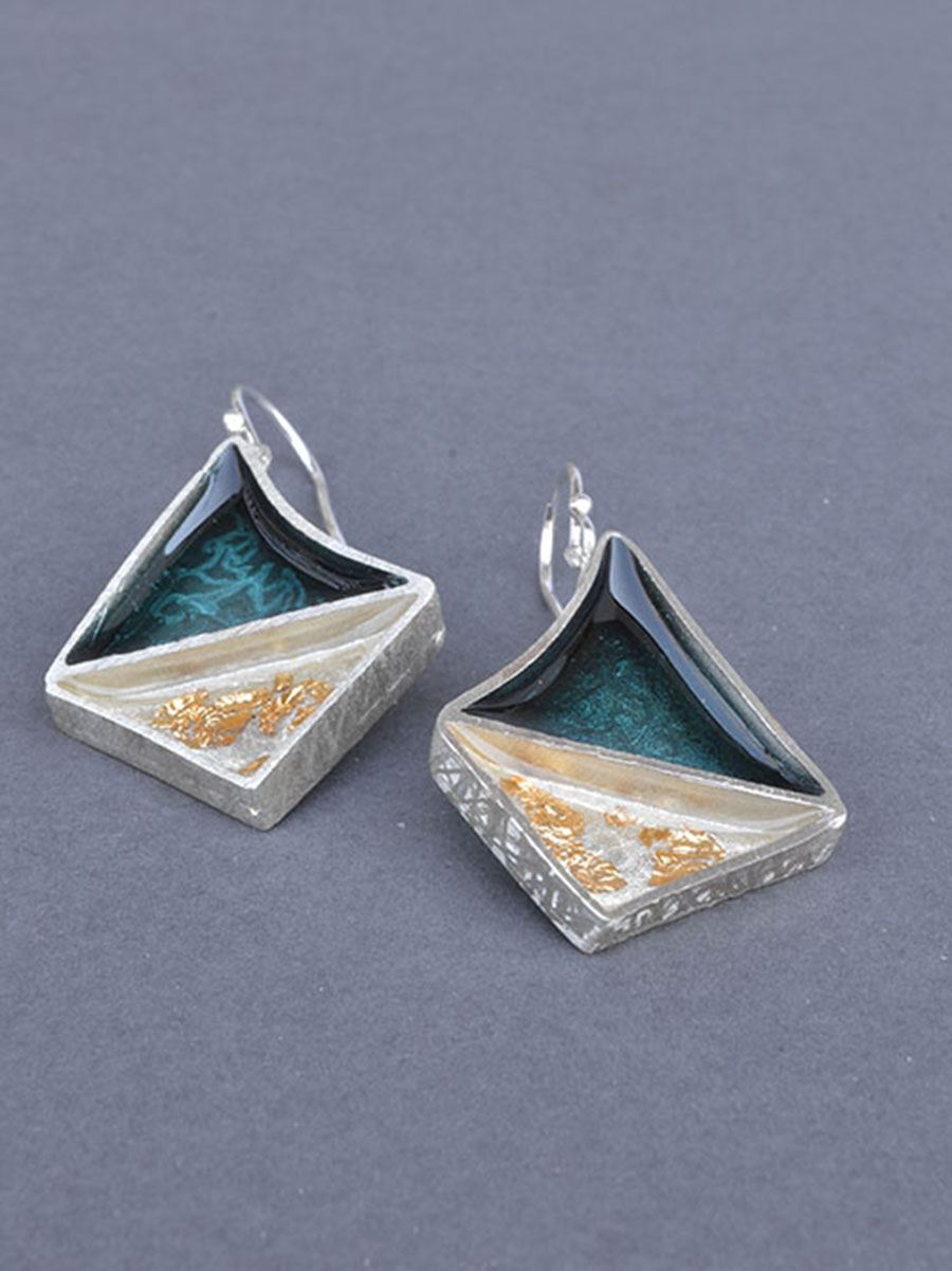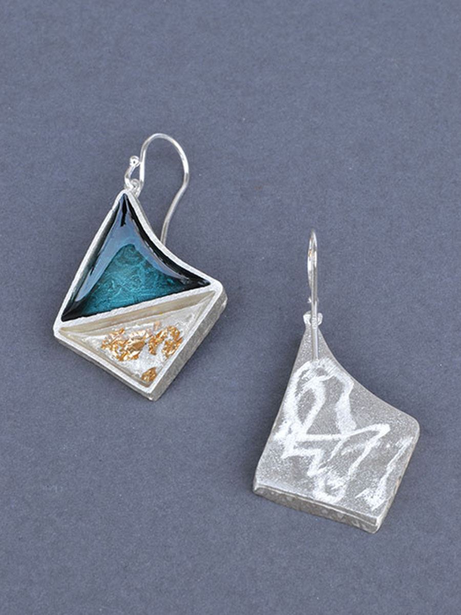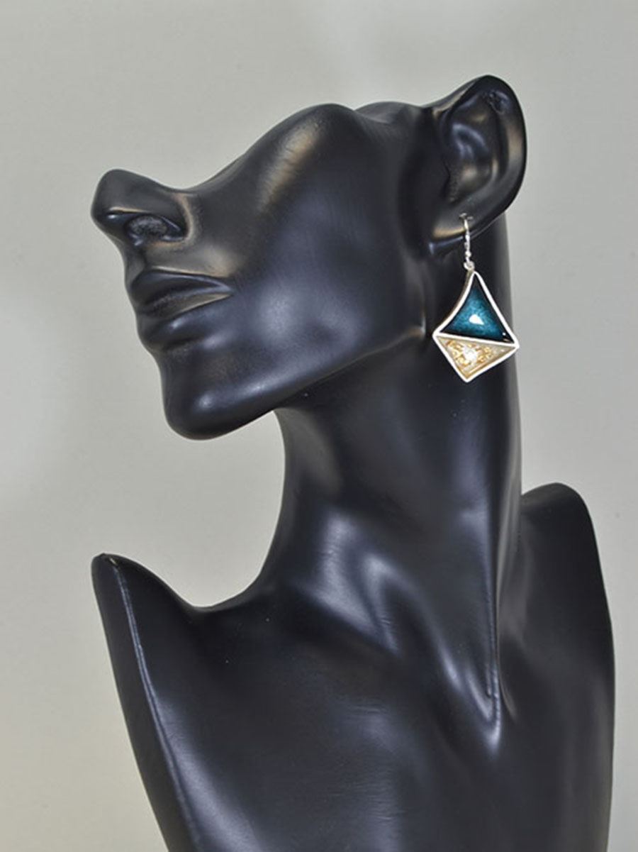 Ασημένια 925 σκουλαρίκια, (μέγιστο μήκος 2,7cm και ύψος 3,6cm) με ρητίνη και φύλλα χρυσού.