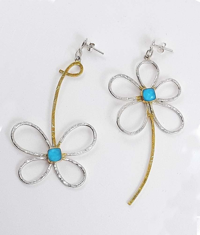 Ασημένια χειροποίητα σκουλαρίκια 925 με επιχρύσωση 18k. Σε μεγάλη ποικιλία ορυκτών και ημιπολύτιμων λίθων.