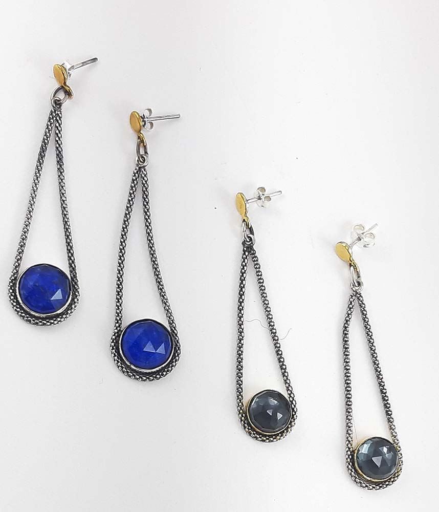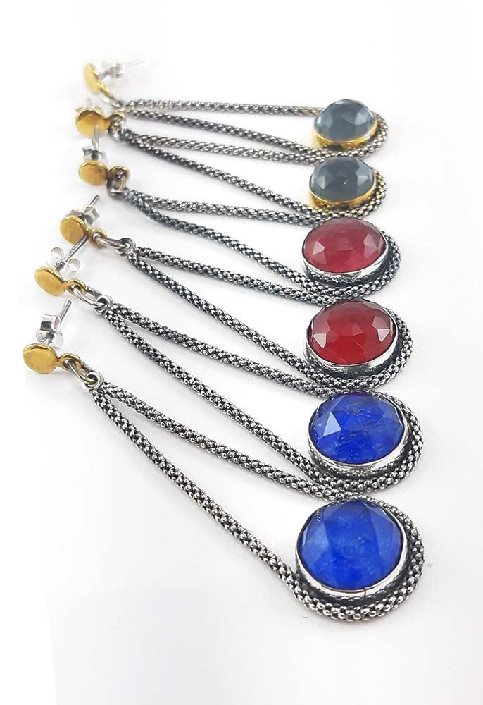 Ασημένια χειροποίητα σκουλαρίκια 925 με επιχρύσωση 18k. Σε μεγάλη ποικιλία ορυκτών και ημιπολύτιμων λίθων.