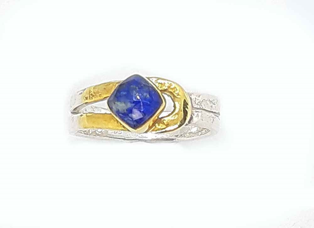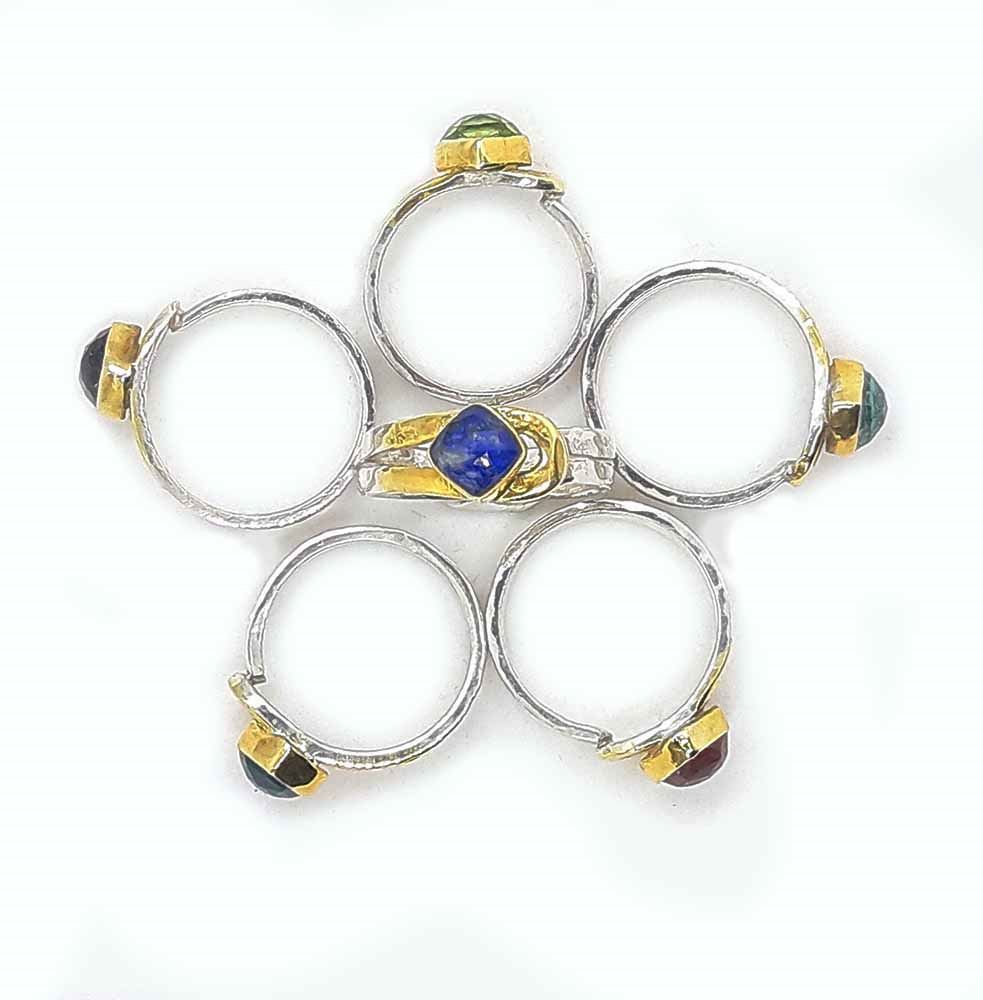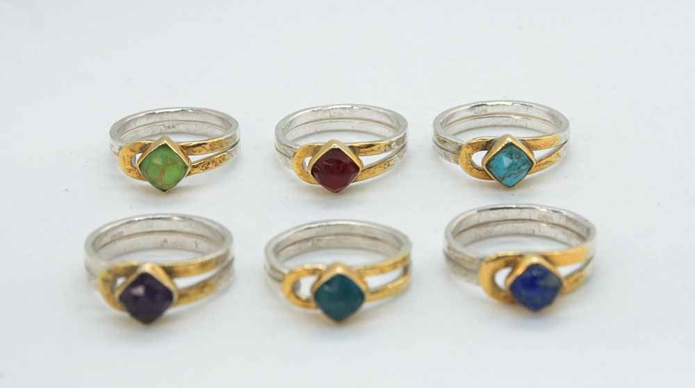 Ασημένιο χειροποίητο δαχτυλίδι 925 τα επιχρυσωμένα μέρη είναι 18k . Σε μεγάλη ποικιλία ορυκτών και ημιπολύτιμων λίθων.