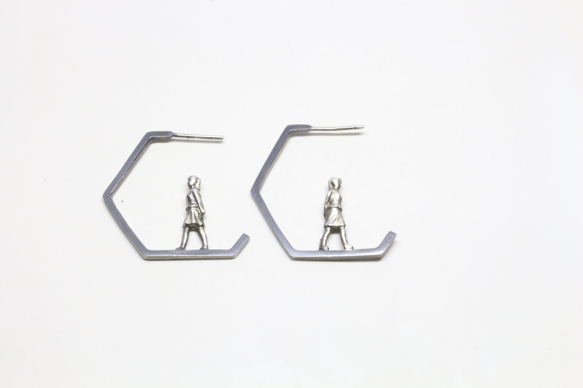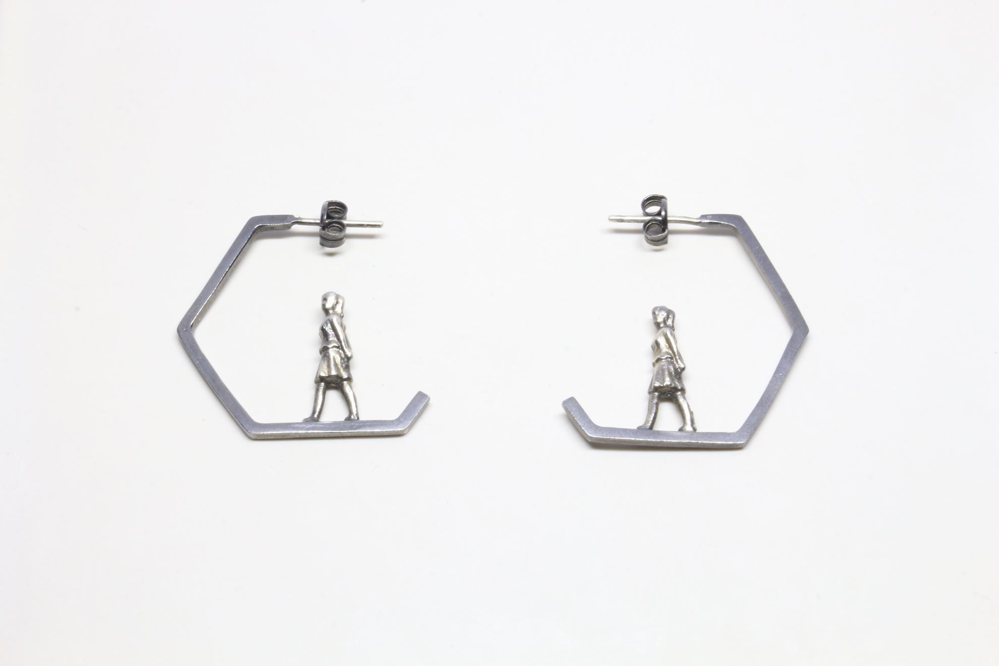 Ασημένια ,οξυδωμένα σκουλαρίκια από την σειρά "microcosmos of my bench". Διαστάσεις 3,20cm* 3 cm