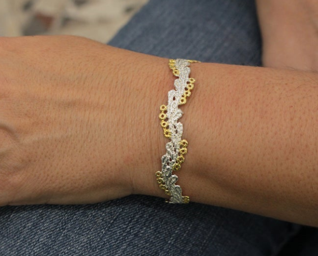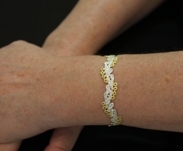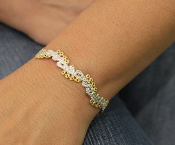 Βραχιόλι χειροπέδα ασήμι 925 με επίχρυσες λεπτομέρειες σχέδιο ακανόνιστο (στις φωτογραφίες συμπεριλαμβάνονται και τα υπόλοιπα κομμάτια του σετ)