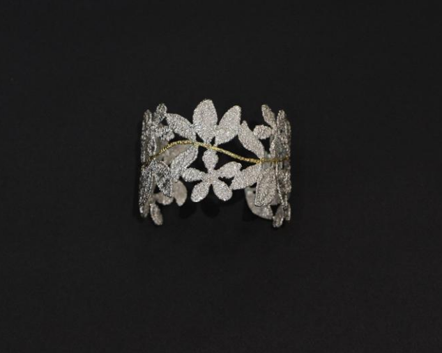 Βραχιόλι χειροπέδα ασήμι 925 με σχέδιο λουλούδι (στις φωτογραφίες συμπεριλαμβάνονται και τα υπόλοιπα κομμάτια του σετ)