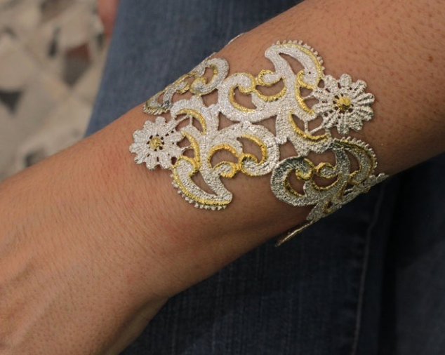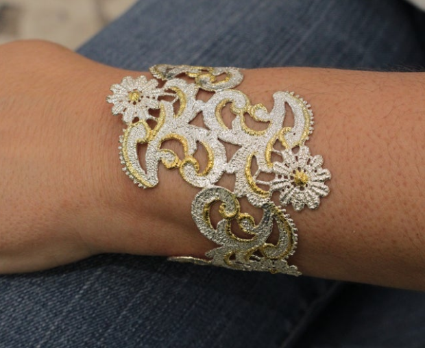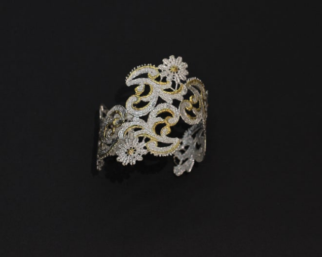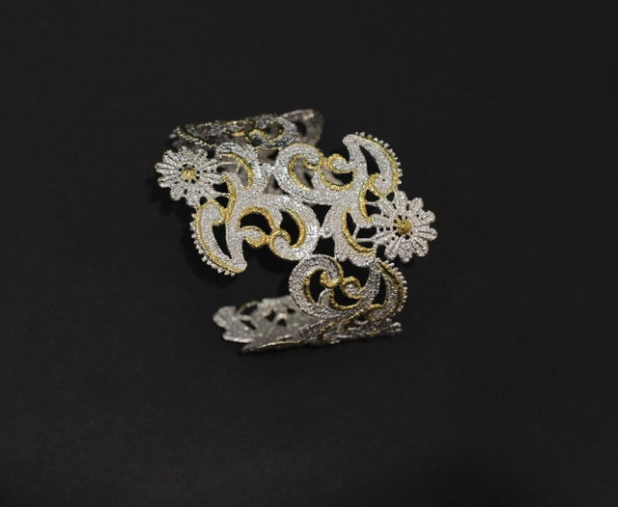 Βραχιόλι χειροπέδα ασήμι 925 με επίχρυσες λεπτομέρειες σχέδιο ακανόνιστο με μαργαρίτα (στις φωτογραφίες συμπεριλαμβάνονται και τα υπόλοιπα κομμάτια του σετ)