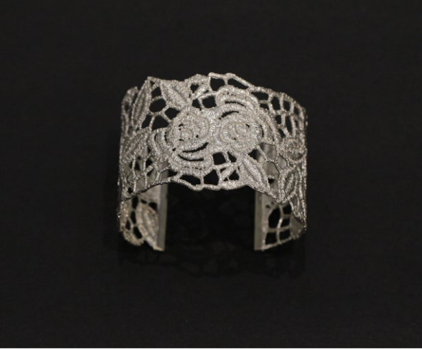 Βραχιόλι χειροπέδα ασήμι 925 με σχέδιο τριαντάφυλλο