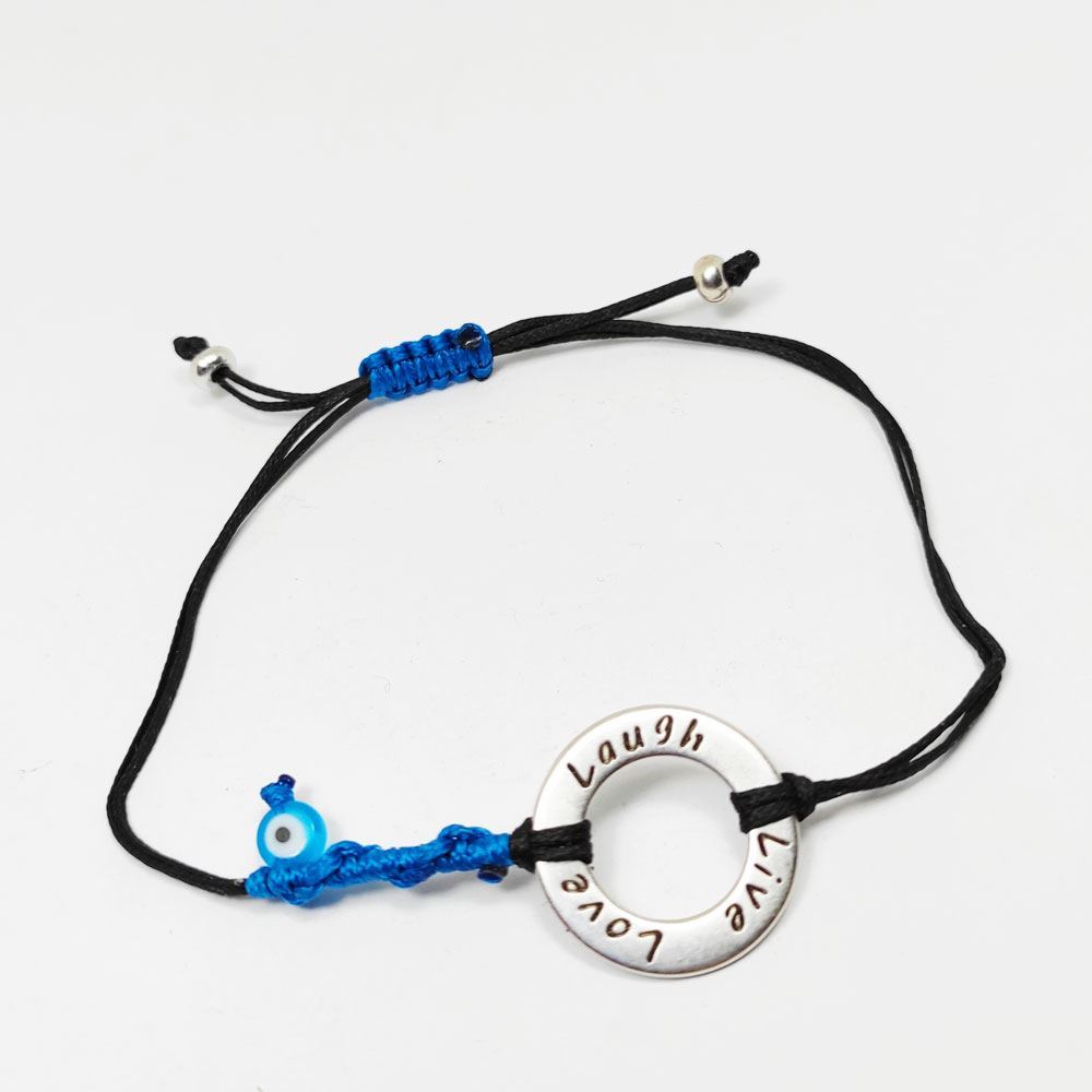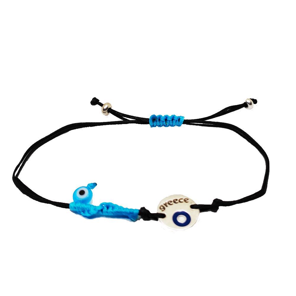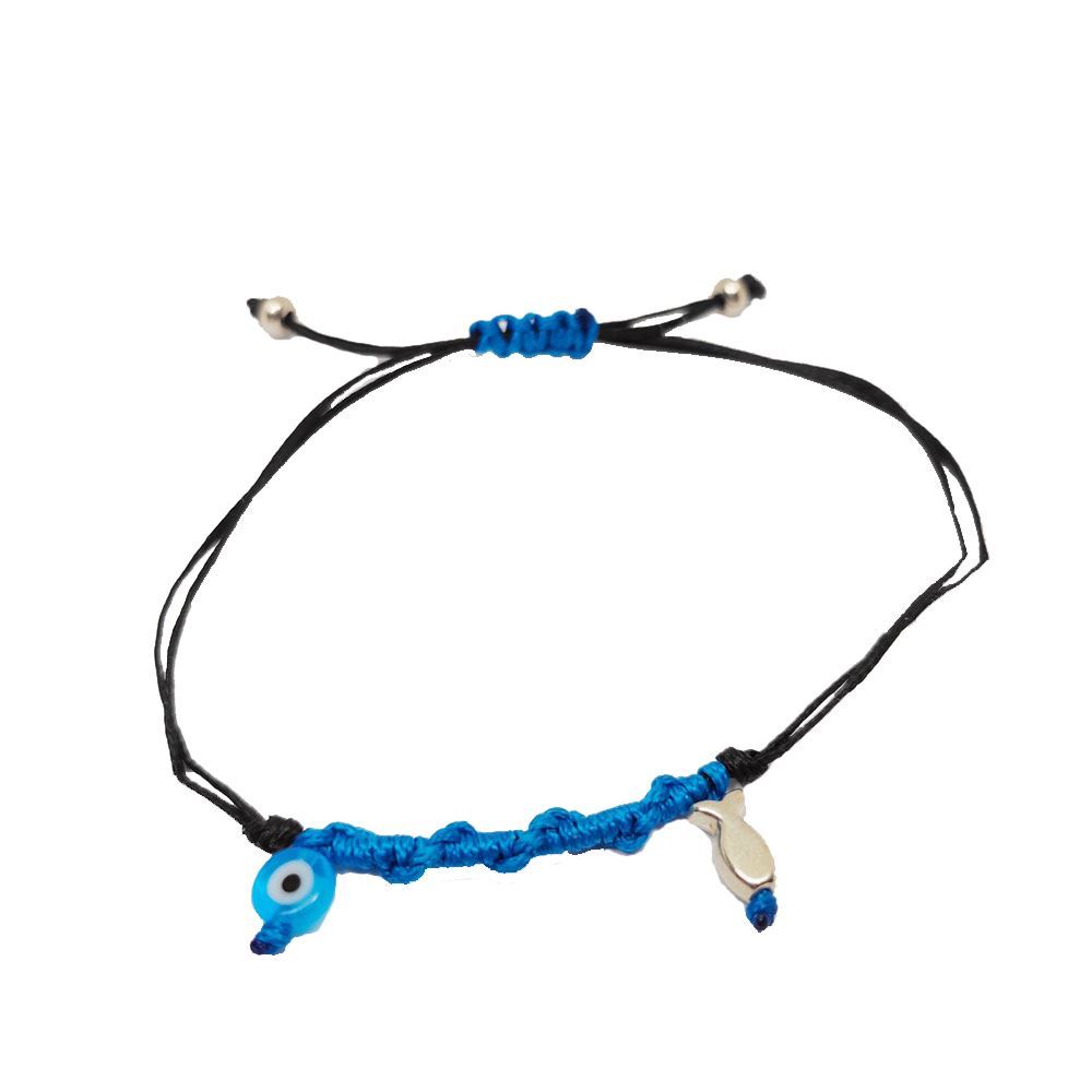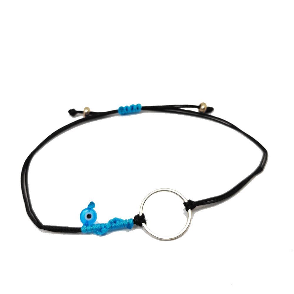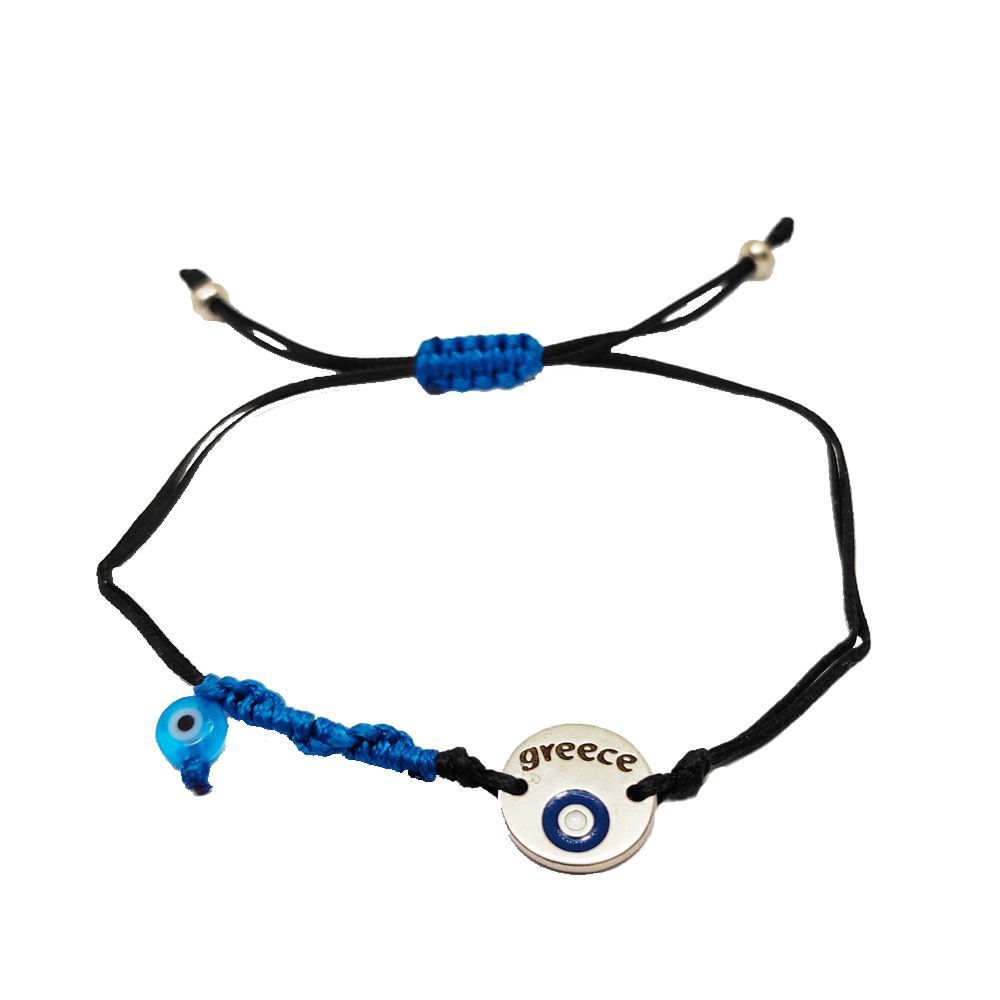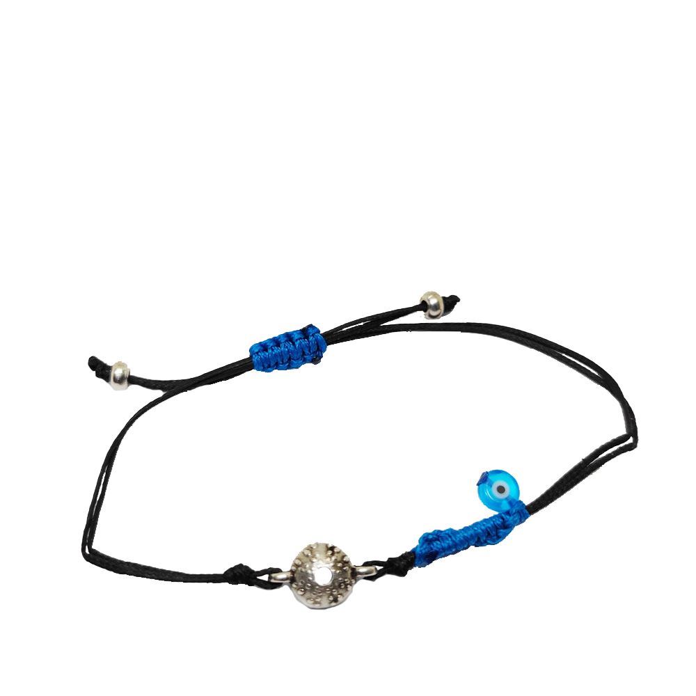 Χειροποίητο βραχιόλι με την τεχνική μακραμέ, με ματάκι & μεταλλικό στοιχείο,αυξομειούμενο κούμπωμα