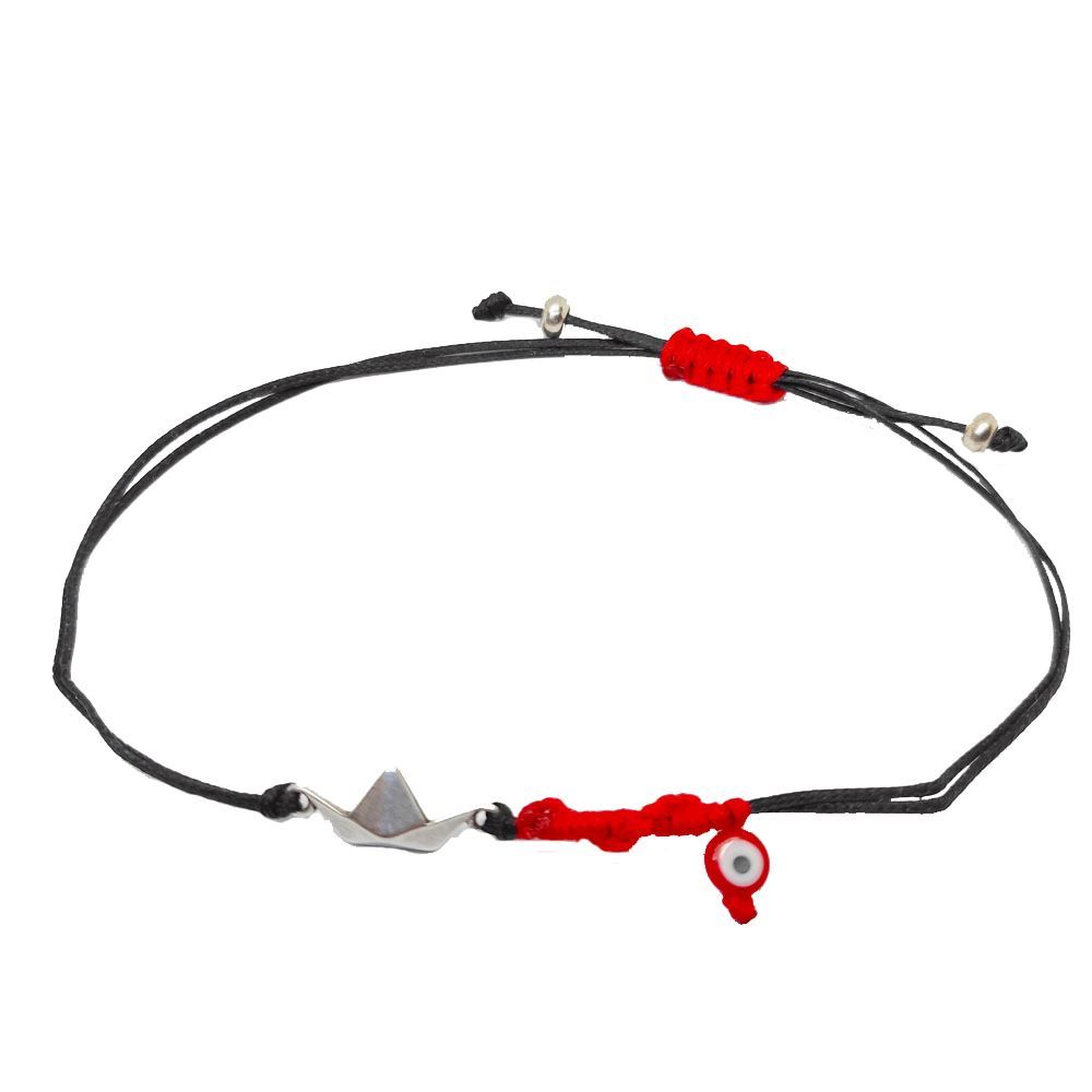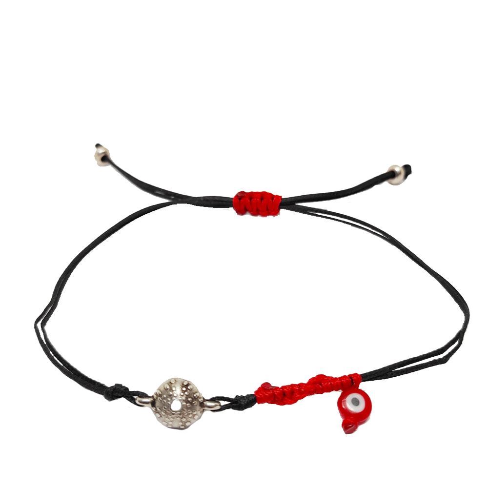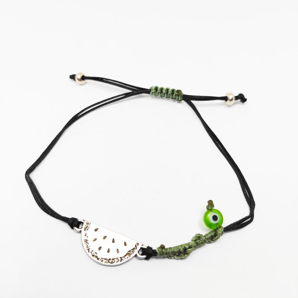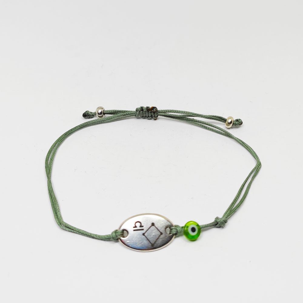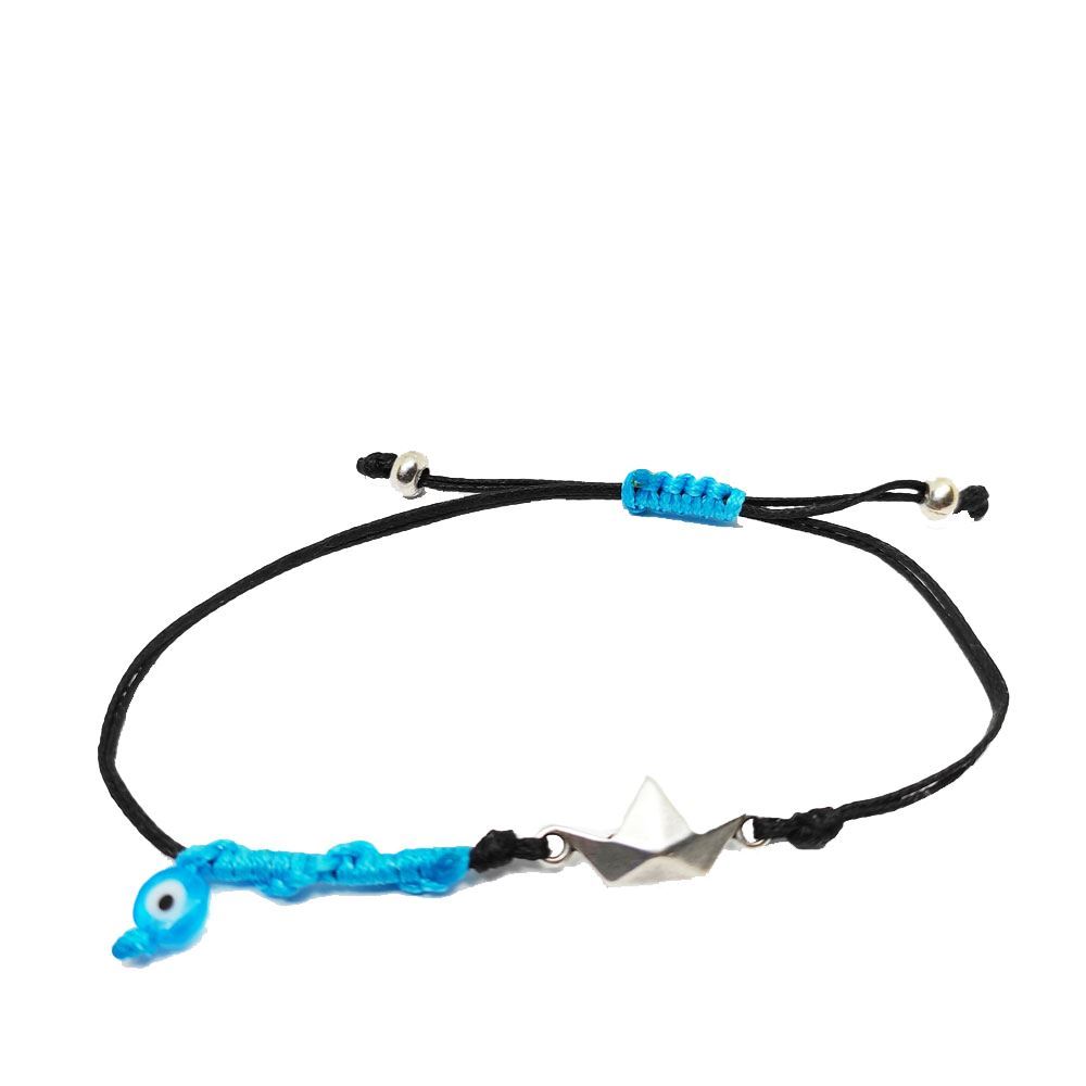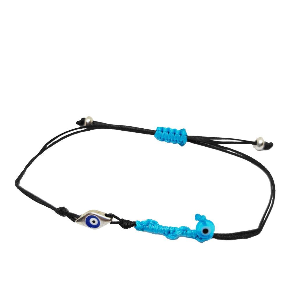 Χειροποίητο βραχιόλι με την τεχνική μακραμέ, με ματάκι & μεταλλικό στοιχείο,αυξομειούμενο κούμπωμα