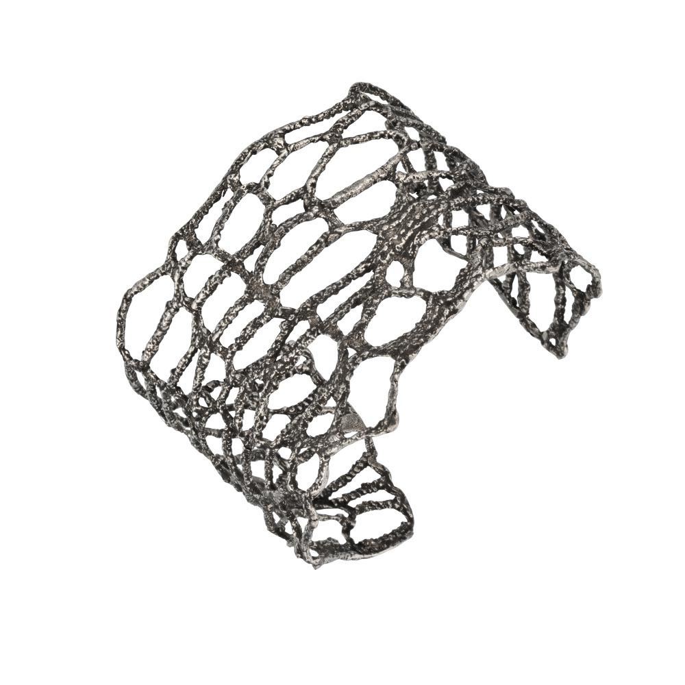 Καθαρή, οργανική φόρμα για αυτό το ξεχωριστό βραχιόλι που αγκαλιάζει τον καρπό ή φοριέται ψηλότερα στον πήχυ. Φτιαγμένο από επιμεταλλωμένο ορείχαλκο, συνδυάζεται με το κολιέ και τα σκουλαρίκια της σειράς Nature. Διατίθεται και σε ασήμι 925 κατόπιν παραγγελίας.