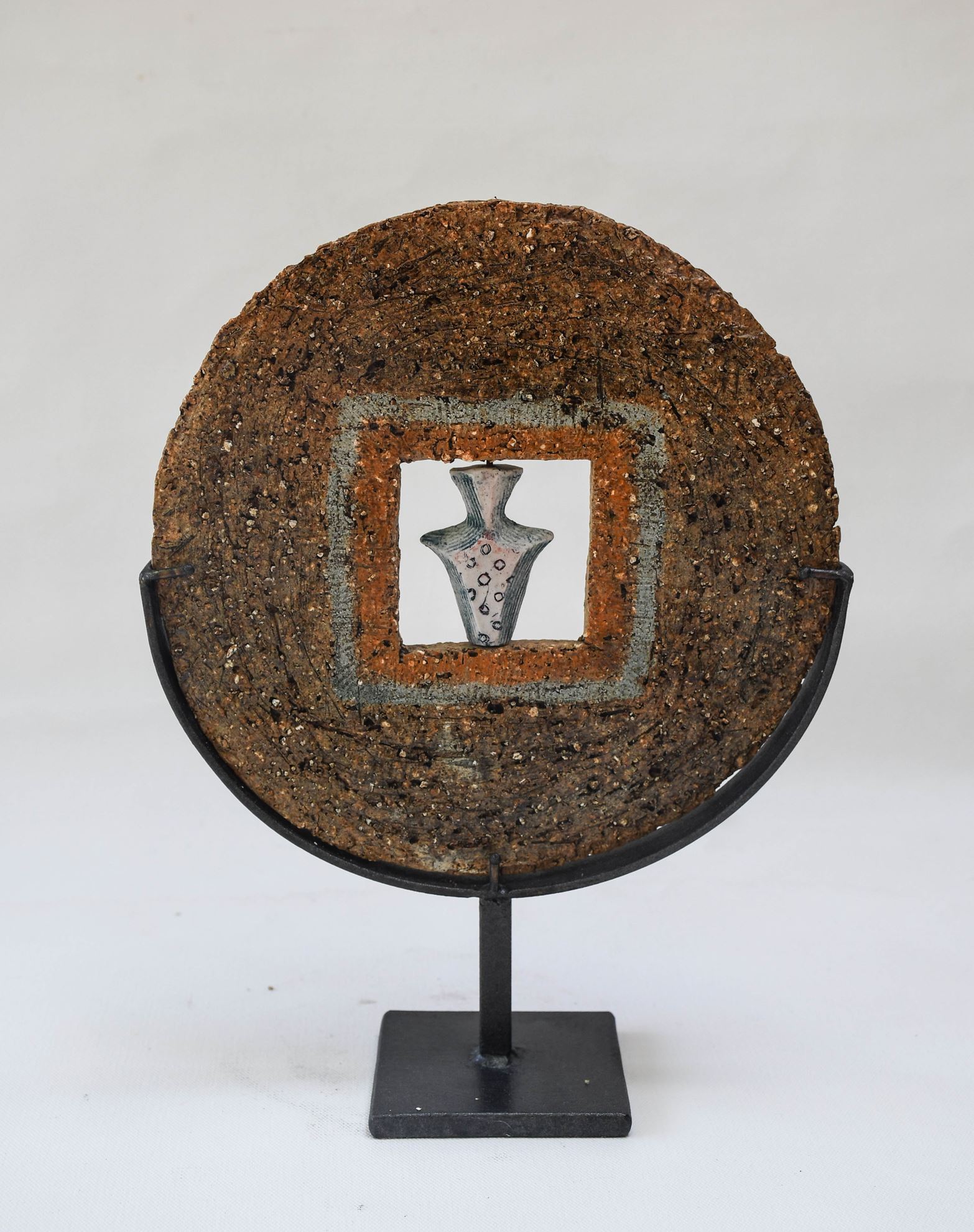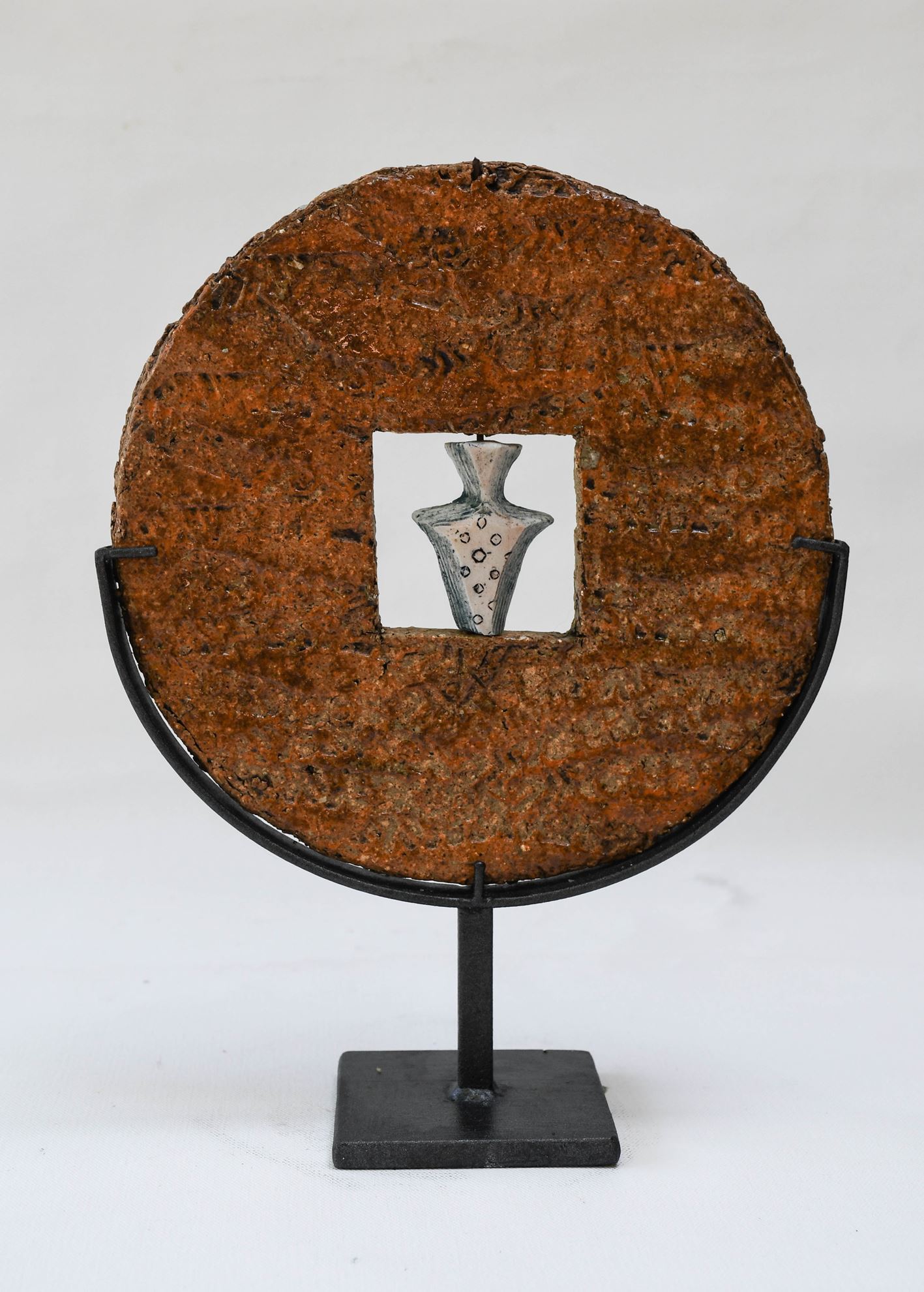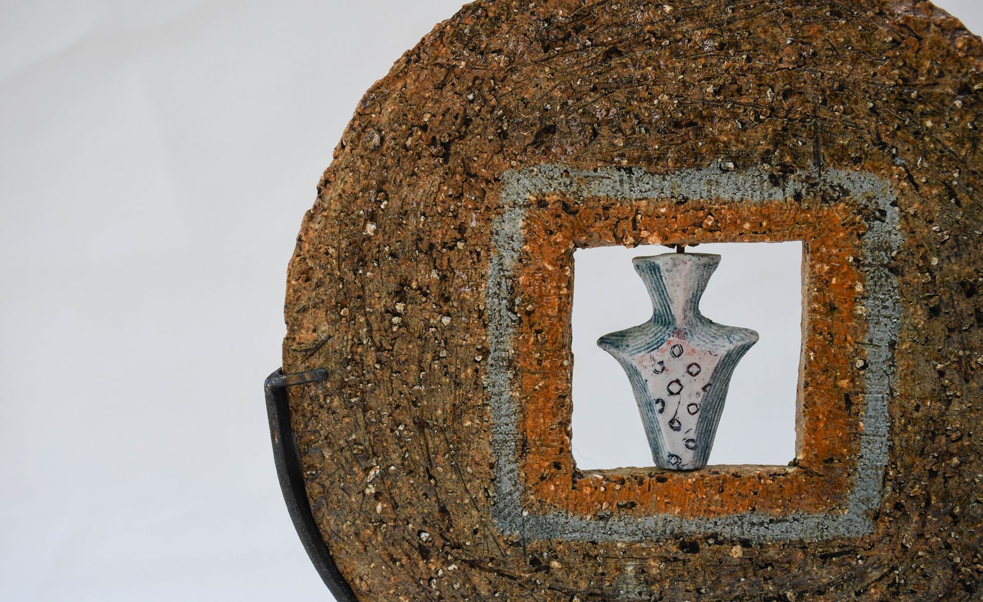 Υλικό: stoneware και πορσελάνη Διαστάσεις: 28 (ύψος) x 21 Βάρος: 1,300kg. Επισήμανση ιδιαιτεροτήτων: αναγωγικό ψήσιμο σε καμίνι υγραερίου, κινούμενα στοιχεία, δημιουργία και σε τρία (3) μεγαλύτερα μεγέθη και με διαφορετικά κινούμενα στοιχεία.