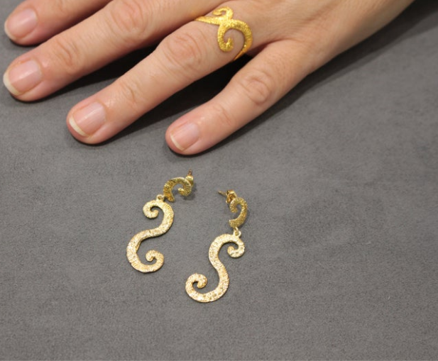 Δαχτυλίδι ασήμι επίχρυσο 925 σχέδιο S διπλό (στις φωτογραφίες συμπεριλαμβάνονται και τα υπόλοιπα κομμάτια του σετ)