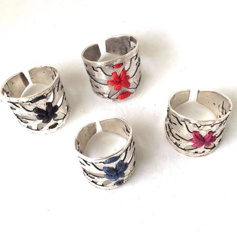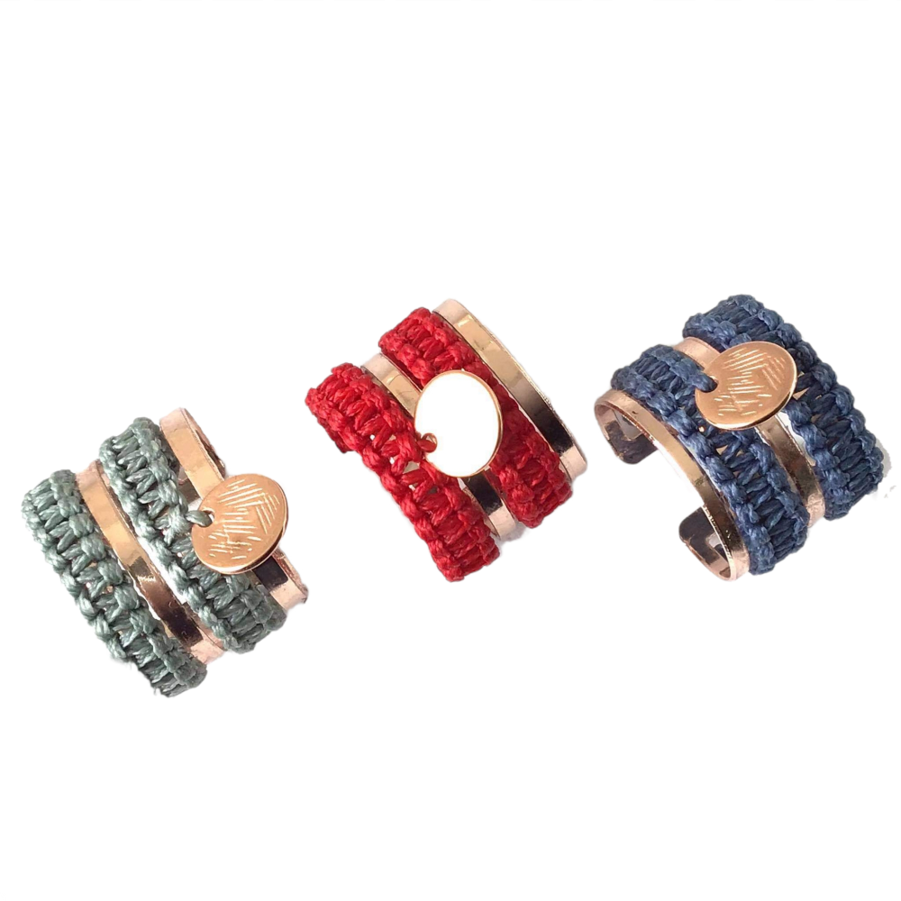 Δαχτυλίδι μακραμέ χειροποίητο σε βάση από ορείχαλκο