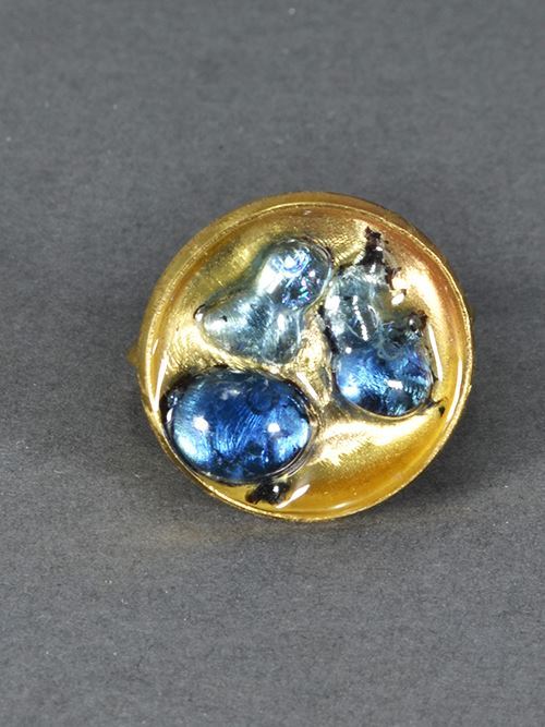 Δαχτυλίδι χειροποίητο από μπρούντζο με ρητίνη και ψημένο γυαλί. Διάμετρος δίσκου 2 cm, η γάμπα είναι ανοιχτή. έτσι ώστε να μπορεί να αυξομειωθεί.