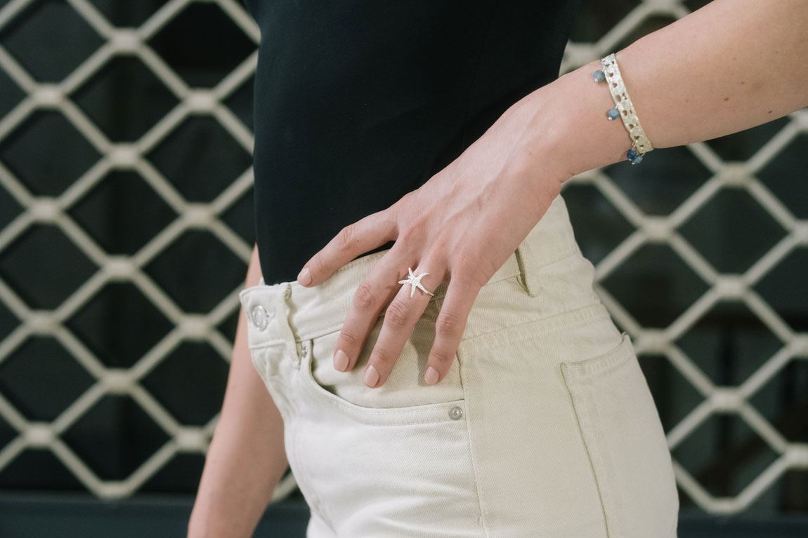 Μικρό, φίνο και καλοκαιρινό, συτό το ανοικτό, χειροποίητο δαχτυλίδι ταιριάζει σε όλα τα μεγέθη. Από ασήμι 925 επιχρυσωμένο. Συνδυάζεται όμορφα με το κολιέ Asterias.
