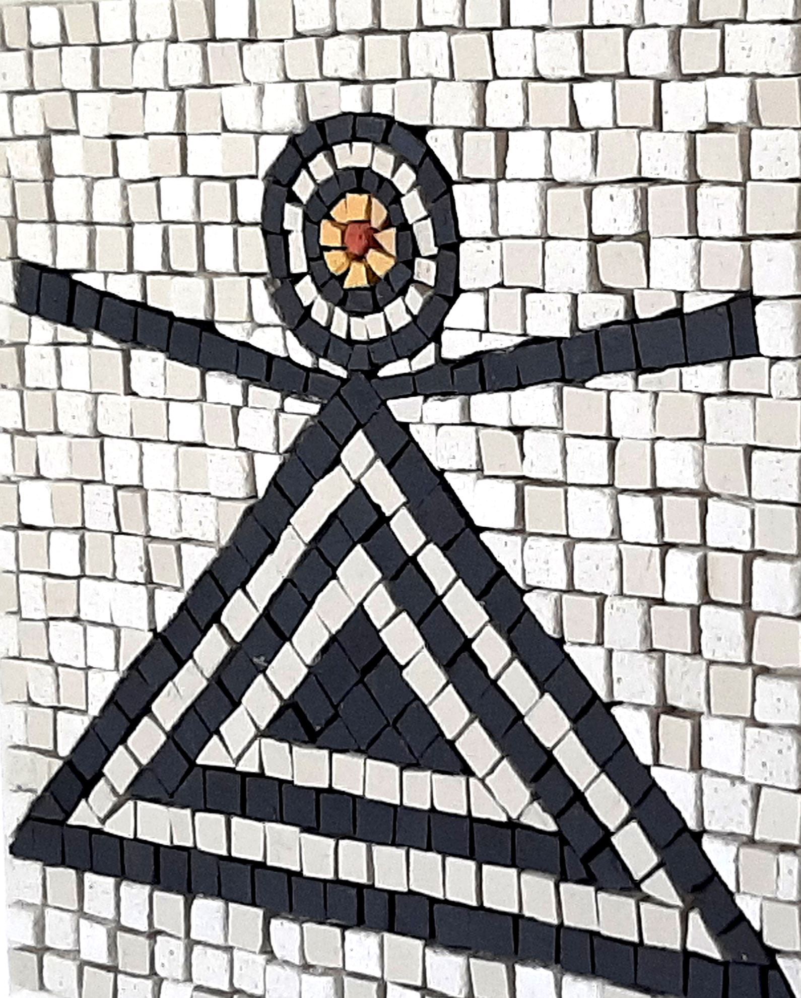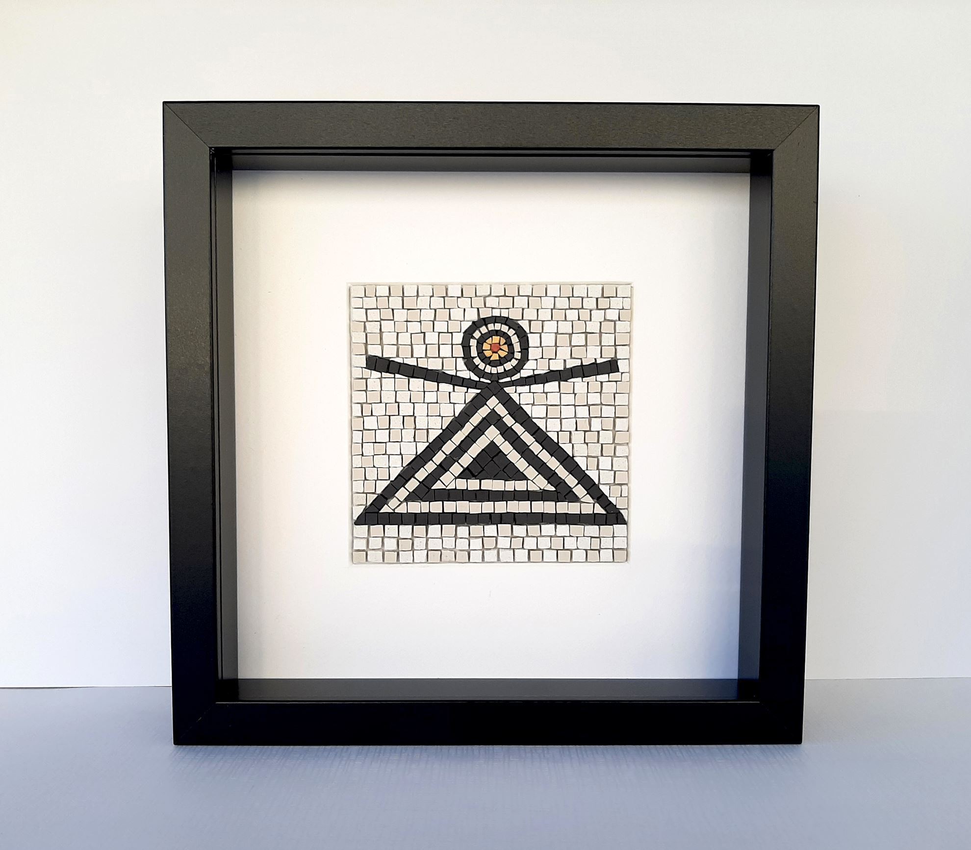 Το ψηφιδωτό έχει κατασκευαστεί με την τεχνική της άμεσης ψηφοθέτησης στο κέντρο του έργου (12 x 12 cm) και πλαισιώνεται από λευκό φύλλο ακουαρέλας με μαύρη κορνίζα (25 x 25 x 4,5 cm). Οι ψηφίδες που χρησιμοποιούνται είναι κεραμικές και βυζαντινές. Κάθε έργο συμπεριλαμβάνει γαντζάκι στήριξης στο πίσω μέρος. Ειδικές παραγγελίες με σχέδια της κατηγορίας ΚΒ 10 – 01 έως ΚΒ 10 – 20 μπορούν να κατασκευαστούν σε αυτή την κατηγορία (μεγέθους και πλαισίου), κατόπιν συννενόησης. Όλα τα έργα είναι χειροποίητα και μπορεί να υπάρχουν μικρές διαφοροποιήσεις. Τα χρώματα των φωτογραφιών μπορεί να φαίνονται ελάχιστα διαφορετικά από τα πραγματικά. Σιγουρευτείτε οτι το μέγεθος είναι το κατάλληλο για εσάς.