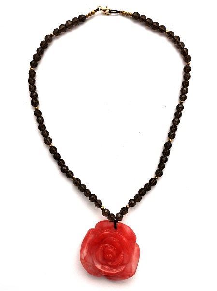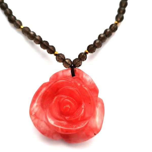 Κολιέ από καπνία και τριαντάφυλλο strawberry quartz