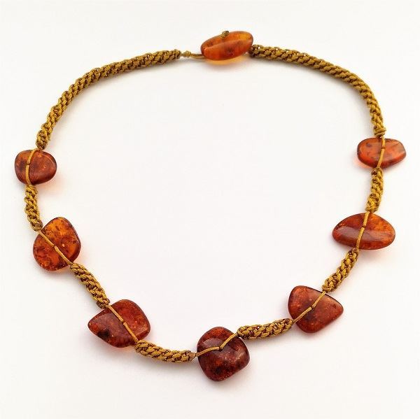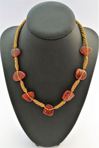 Κολιέ από κεχριμπάρι μπαρόκ βαλτικής με δέσιμο μακραμε, μήκος 42 εκατοστά.