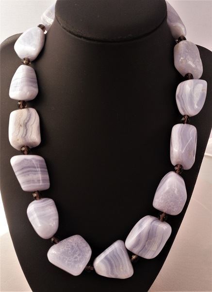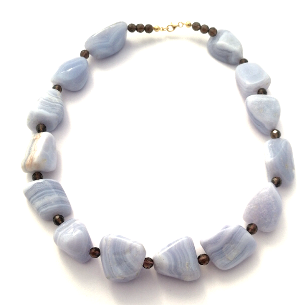 Κολιέ από χαλκηδόνιο βότσαλο με καπνία μπίλια ταγιέ 6mm ενδιάμεσα, μήκος 45 εκατοστά, κούμπωμα από επίχρυσο ασήμι 925.