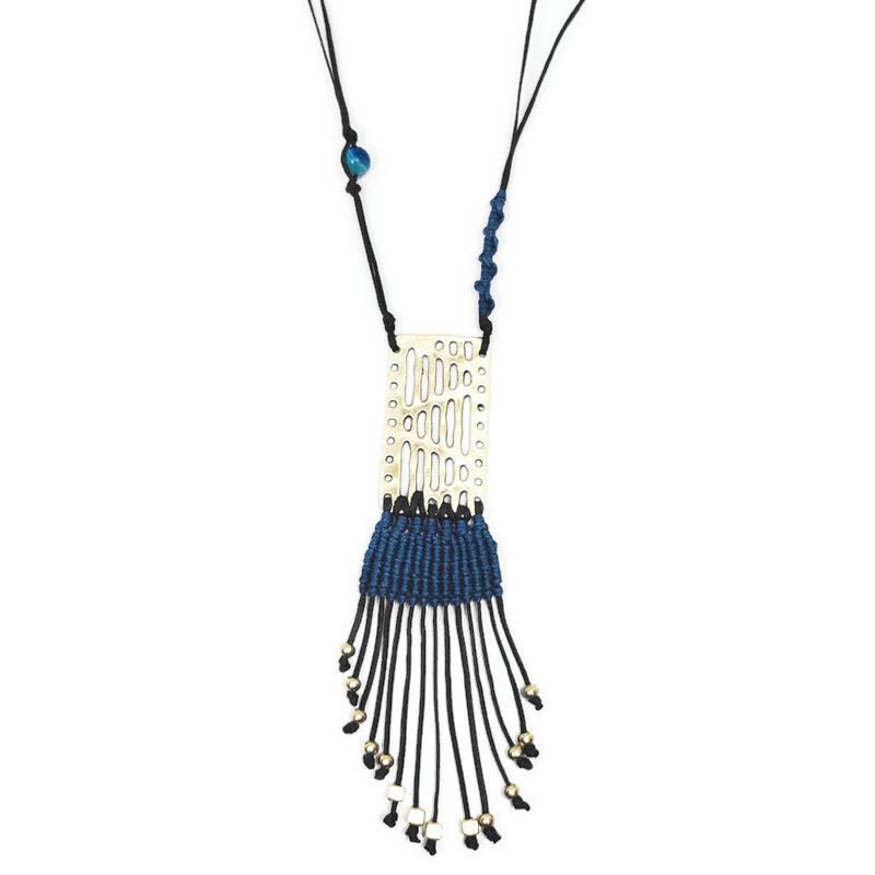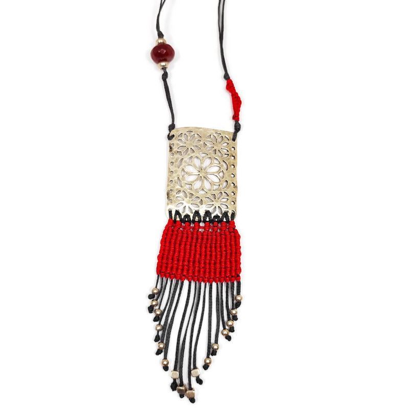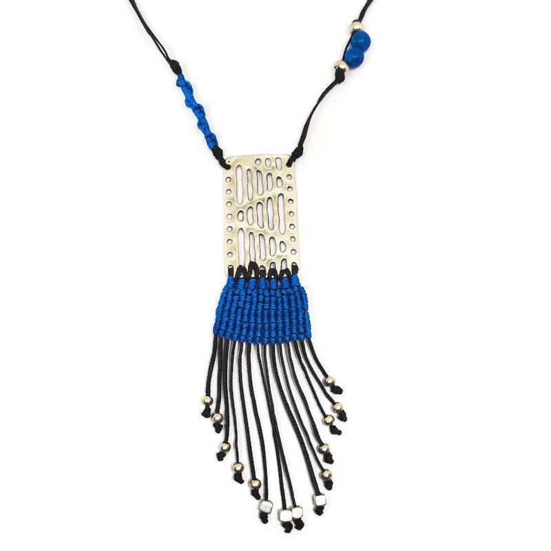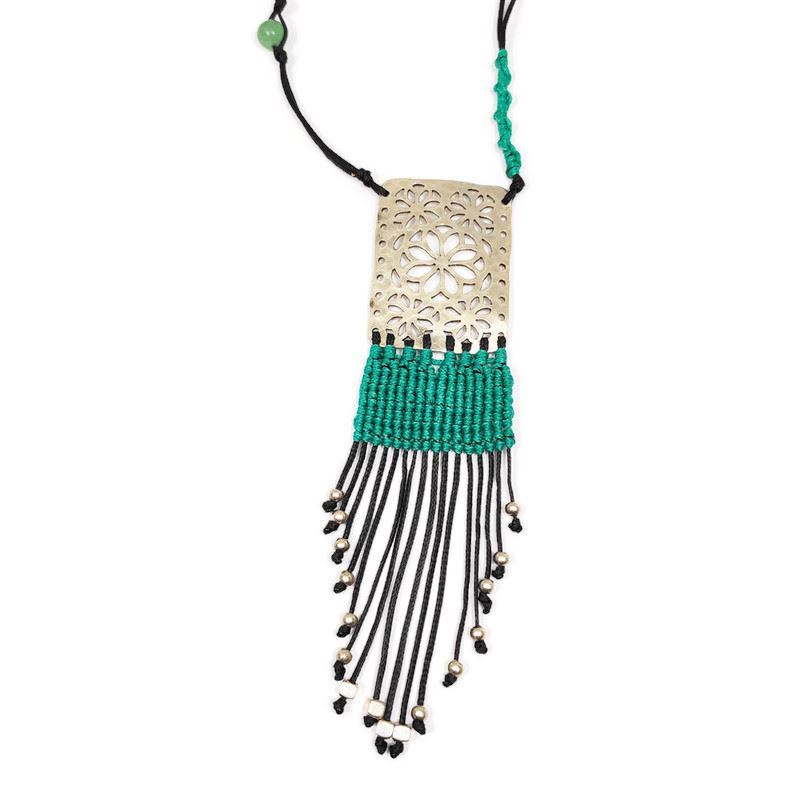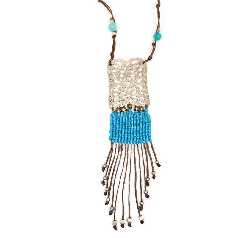 Κολιέ μακραμέ χειροποίητο με μεταλλικά στοιχεία, ρυθμιζόμενο ύψος