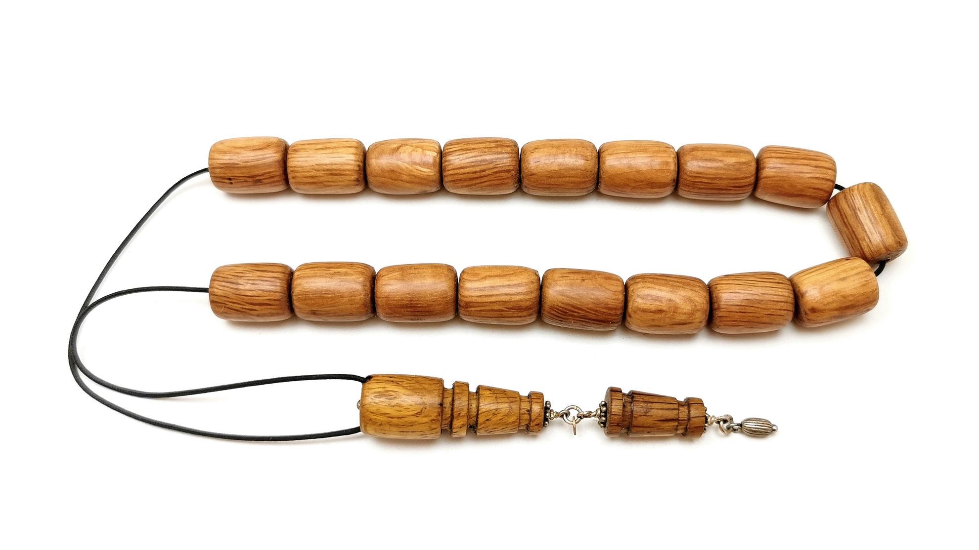 Χειροποίητο αρωματικό κομπολόι από Ελληνική Βελανιδιά, μέγεθος χάντρας 14x19mm, δέσιμο με ασήμι 925 και στολισμένο με χάντρες. Παραδίδεται σε κασετίνα και συνοδεύεται με πιστοποιητικό έντυπο που περιγράφει τη διαδικασία κατασκευής του. Τα προϊόντα μας στη σειρά ‘χειροποίητο ξύλο’ είναι όλα από Ελληνικά ξύλα που μαζεύονται από την Ελληνική ύπαιθρο, μετά τοποθετούνται σε σκιερό μέρος και σκεπάζονται με πριονίδι για περίπου 12 έως 16 μήνες αναλόγως το ξύλο, ώστε να αποβάλουν κάθε ίχνος υγρασίας!!! Μετά αρχίζει το τεμάχισμα και η χειροποίητη επεξεργασία μίας – μίας χάντρας σε τόρνο σμιλεύοντάς την με το χέρι!!! Αφού της δώσουμε το σχήμα, προχωράμε στο φινίρισμα, αυτό σημαίνει 5 ‘χέρια’ με διαφορετικό νούμερο γυαλόχαρτου και όταν η χάντρα μας είναι έτοιμη γίνεται επάλειψη με φυσικό κερί μέλισσας και αιθέρια έλαια!!! Το δέσιμο μπορεί να είναι με ασήμι 925 ή απλό μέταλλο, αναλόγως την επιθυμία σας και η φούντα από φυτικό μετάξι!!! Το κάθε κομπολόι είναι μοναδικό, δεν μοιάζει με κανένα άλλο ακόμα και από το ίδιο κομμάτι ξύλου!!! Όλα αυτά για να γνωρίζει ο κάτοχος ενός τέτοιου κομπολογιού, τι κρατάει στα χέρια του!!! Λόγω της ιδιαιτερότητάς τους, όπως αντιλαμβάνεστε, είναι περιορισμένης παραγωγής!!! Τα διαθέσιμα αυτή τη στιγμή ξύλα είναι: Ελιά – Αμυγδαλιά – Βερικοκιά – Ακακία – Δρυς – Πουρνάρι – Βελανιδιά – Κουμαριά – Σκίνος – Αγριελιά – Κουτσουπιά – Μουριά – Πορτοκαλιά – Βίδι – Ευκάλυπτος – Καρυδιά – Ιτιά – Κερασιά – Κυπαρίσσι.