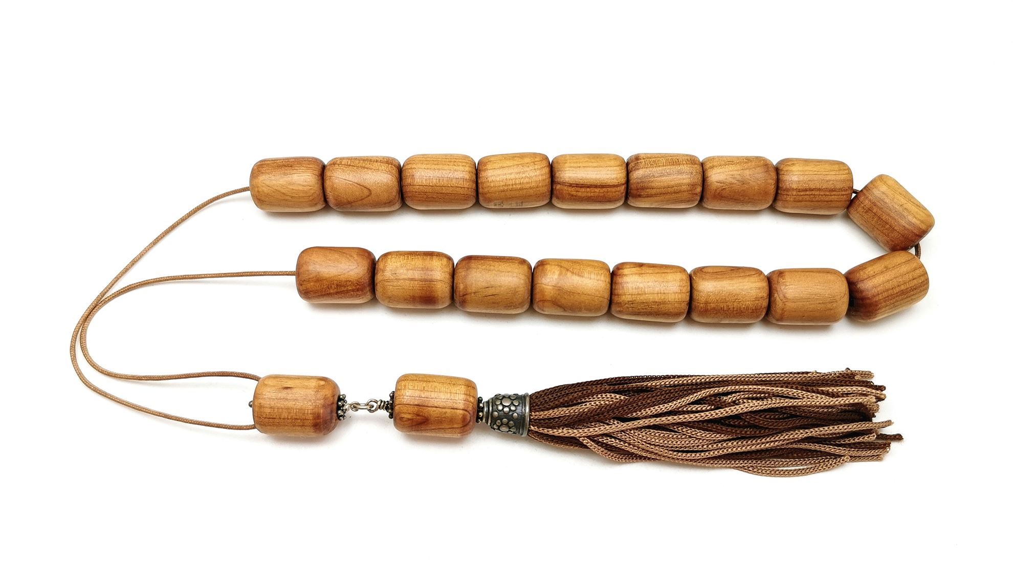 Χειροποίητο αρωματικό κομπολόι από Ελληνικό Κυπαρίσσι, μέγεθος χάντρας 14x19mm, δέσιμο με χάντρες, μεταλλικά στοιχεία και φούντα από φυτικό μετάξι που δεν τσαλακώνεται και δεν ξεφτίζει. Παραδίδεται σε κασετίνα και με συνοδευτικό έντυπο που περιγράφει τη διαδικασία κατασκευής του. Τα προϊόντα μας στη σειρά ‘χειροποίητο ξύλο’ είναι όλα από Ελληνικά ξύλα που έχουν μαζευτεί από την Ελληνική ύπαιθρο, μετά τοποθετήθηκαν σε σκιερό μέρος και σκεπάστηκαν με πριονίδι για περίπου 12 έως 16 μήνες αναλόγως το ξύλο, ώστε να αποβάλουν κάθε ίχνος υγρασίας!!! Μετά αρχίζει το τεμάχισμα και η χειροποίητη επεξεργασία μίας-μίας χάντρας σε τόρνο σμιλεύοντάς την με το χέρι!!! Αφού της δώσουμε το σχήμα, προχωράμε στο φινίρισμα, αυτό σημαίνει 5 ‘χέρια’ με διαφορετικό νούμερο γυαλόχαρτου και όταν η χάντρα μας είναι έτοιμη γίνεται επάλειψη με φυσικό κερί μέλισσας και αιθέρια έλαια!!! Το δέσιμο μπορεί να είναι με ασήμι 925 ή απλό μέταλλο,αναλόγως την επιθυμία σας και η φούντα από φυτικό μετάξι!!! Το κάθε κομπολόι είναι μοναδικό, δεν μοιάζει με κανένα άλλο ακόμα και από το ίδιο ξύλο!!! Όλα αυτά για να γνωρίζει ο κάτοχος ενός τέτοιου κομπολογιού, τι κρατάει στα χέρια του!!! Λόγω της ιδιαιτερότητάς τους, όπως αντιλαμβάνεστε, είναι περιορισμένης παραγωγής!!! Τα διαθέσιμα αυτή τη στιγμή ξύλα είναι: Ελιά – Αμυγδαλιά – Βερικοκιά – Ακακία – Δρυς – Πουρνάρι – Βελανιδιά – Κουμαριά – Σκίνος – Αγριελιά – Κουτσουπιά – Μουριά – Πορτοκαλιά – Βίδι – Ευκάλυπτος – Καρυδιά – Ιτιά – Κερασιά – Κυπαρίσσι.