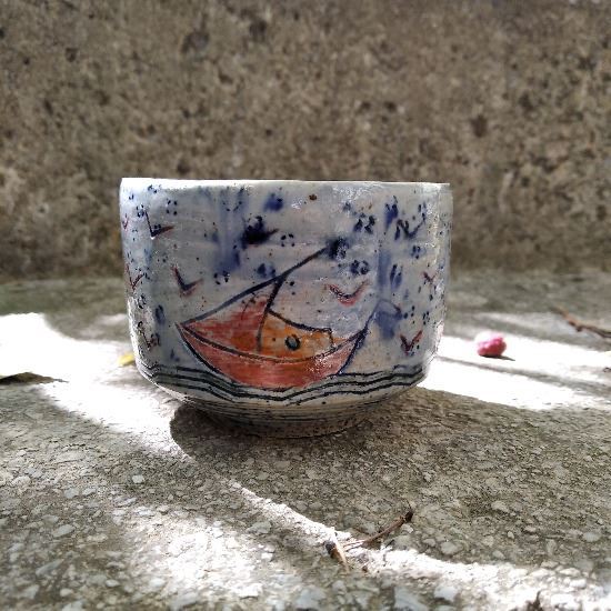 Υλικό: πορσελάνη Διαστάσεις: 9 (ύψος) x 6 Βάρος: 200 gr Επισήμανση ιδιαιτεροτήτων: αναγωγικό ψήσιμο σε καμίνι υγραερίου, διακόσμηση εξ ολοκλήρου ζωγραφισμένη στο χέρι. Διαθέσιμη και σε λίγο μεγαλύτερο μέγεθος (11x8), 8 ευρώ.