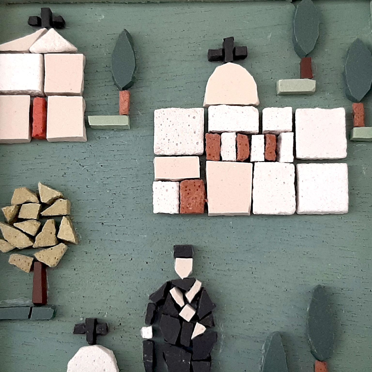 Τo ψηφιδωτό καδράκι κατασκευάζεται σε βάση χρωματισμένου ρητινούχου γύψου και συμπεριλαμβάνει μία βάση στήριξης από το ίδιο υλικό. Οι ψηφίδες που χρησιμοποιούνται είναι κεραμικές και βυζαντινές. Οι διαστάσεις του είναι 10 x 10 cm και πάχος 1 cm. Όλα τα έργα είναι χειροποίητα και μπορεί να υπάρχουν μικρές διαφοροποιήσεις. Τα χρώματα των φωτογραφιών μπορεί να φαίνονται ελάχιστα διαφορετικά από τα πραγματικά. Σιγουρευτείτε ότι το μέγεθος είναι το κατάλληλο για εσάς.