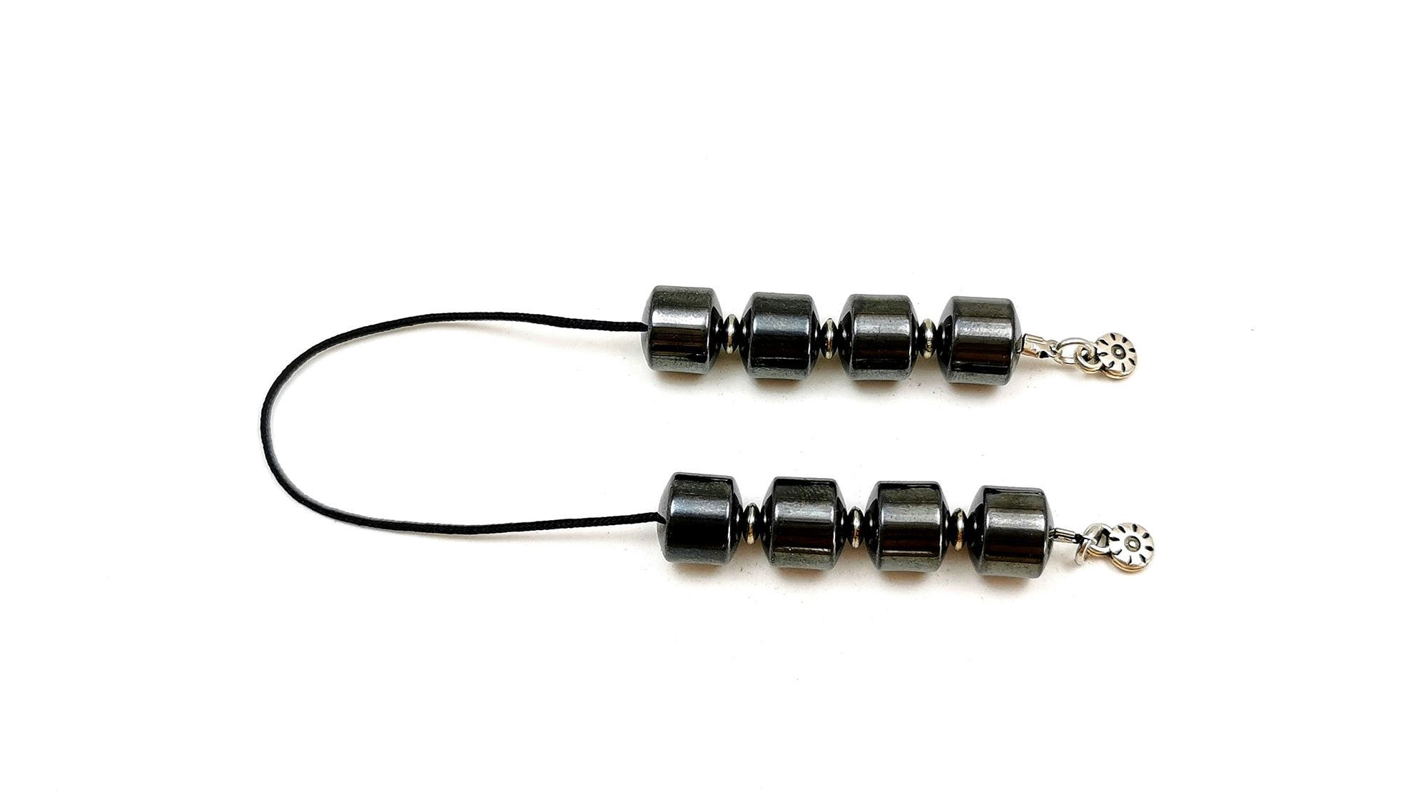 Μπεγλέρι από αιματίτη,μέγεθος χάντρας 12χ12mm,στολισμένο με μεταλλικά στοιχεία.Παραδίδεται σε ημιδιάφανο πουγκάκι οργάντζας με καρτελάκι που αναφέρει τι υλικό είναι, σε Ελληνικά – Αγγλικά.