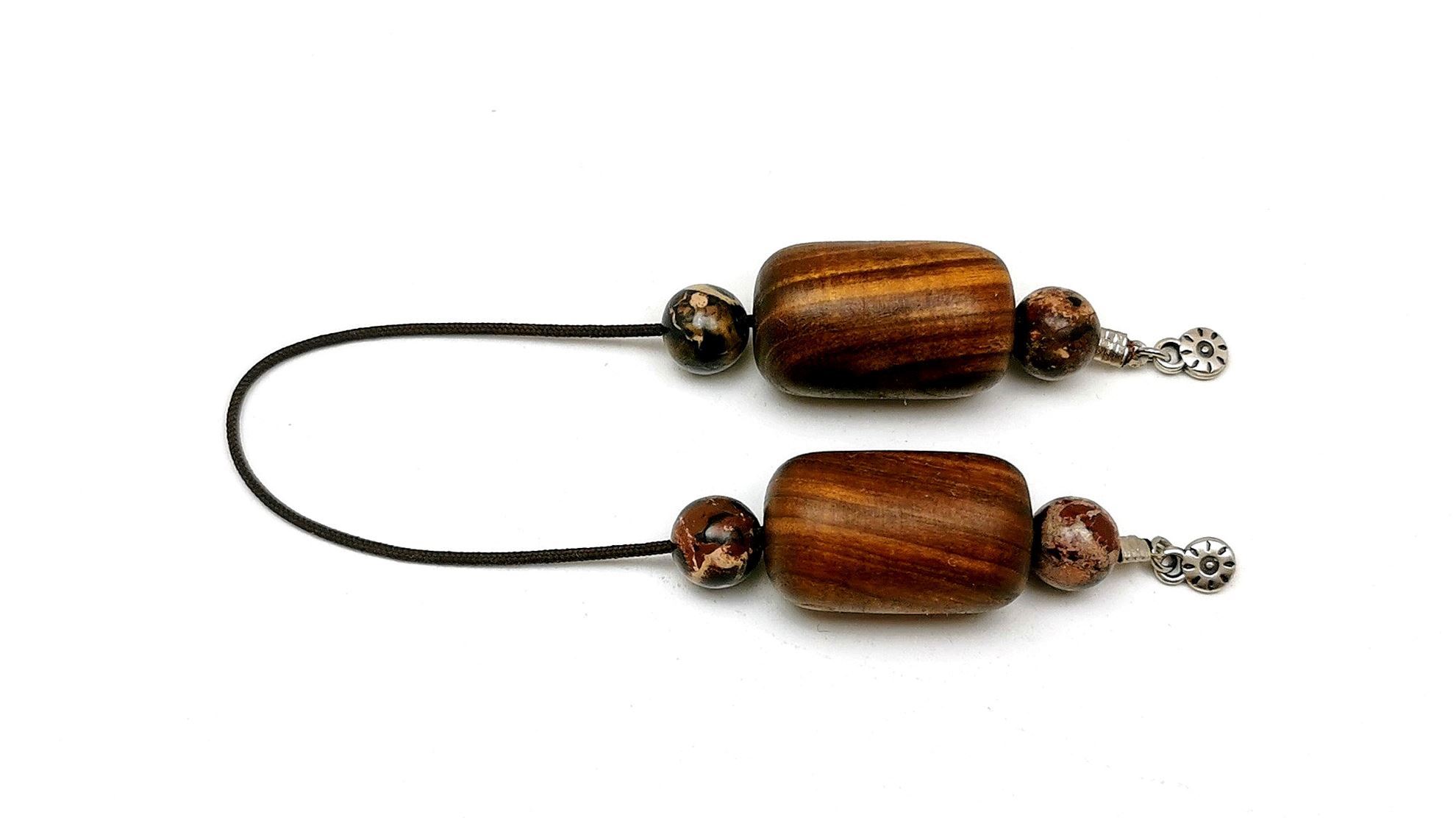 Χειροποίητο αρωματικό μπεγλέρι από Ελληνική Ακακία, μέγεθος χάντρας 18x28mm, στολισμένο με Ίασπη 10mm και μεταλλικά στοιχεία. Παραδίδεται σε κουτάκι και συνοδεύεται με πιστοποιητικό έντυπο που περιγράφει τη διαδικασία κατασκευής του. Τα προϊόντα μας στη σειρά ‘χειροποίητο ξύλο’ είναι όλα από Ελληνικά ξύλα που έχουν μαζευτεί από την Ελληνική ύπαιθρο, μετά τοποθετήθηκαν σε σκιερό μέρος και σκεπάστηκαν με πριονίδι για περίπου 12 έως 16 μήνες αναλόγως το ξύλο, ώστε να αποβάλουν κάθε ίχνος υγρασίας!!! Μετά αρχίζει το τεμάχισμα και η χειροποίητη επεξεργασία μίας-μίας χάντρας σε τόρνο σμιλεύοντάς την με το χέρι!!! Αφού της δώσουμε το σχήμα, προχωράμε στο φινίρισμα, αυτό σημαίνει 5 ‘χέρια’ με διαφορετικό νούμερο γυαλόχαρτου και όταν η χάντρα μας είναι έτοιμη γίνεται επάλειψη με φυσικό κερί μέλισσας και αιθέρια έλαια!!! Το δέσιμο μπορεί να είναι με απλό μέταλλο ή με ασήμι 925 αναλόγως την επιθυμία σας,με επιπλέον το κόστος του ασημιού. Το κάθε μπεγλέρι είναι μοναδικό, δεν μοιάζει με κανένα άλλο ακόμα και από το ίδιο κομμάτι ξύλου!!! Όλα αυτά για να γνωρίζει ο κάτοχος ενός τέτοιου μπεγλεριού, τι κρατάει στα χέρια του!!! Λόγω της ιδιαιτερότητάς τους, όπως αντιλαμβάνεστε, είναι περιορισμένης παραγωγής!!! Τα διαθέσιμα αυτή τη στιγμή ξύλα είναι: Ελιά – Αμυγδαλιά – Βερικοκιά – Ακακία – Δρυς – Πουρνάρι – Βελανιδιά – Κουμαριά – Σκίνος – Αγριελιά – Κουτσουπιά – Μουριά – Πορτοκαλιά – Βίδι – Ευκάλυπτος – Καρυδιά – Ιτιά – Κερασιά – Κυπαρίσσι.