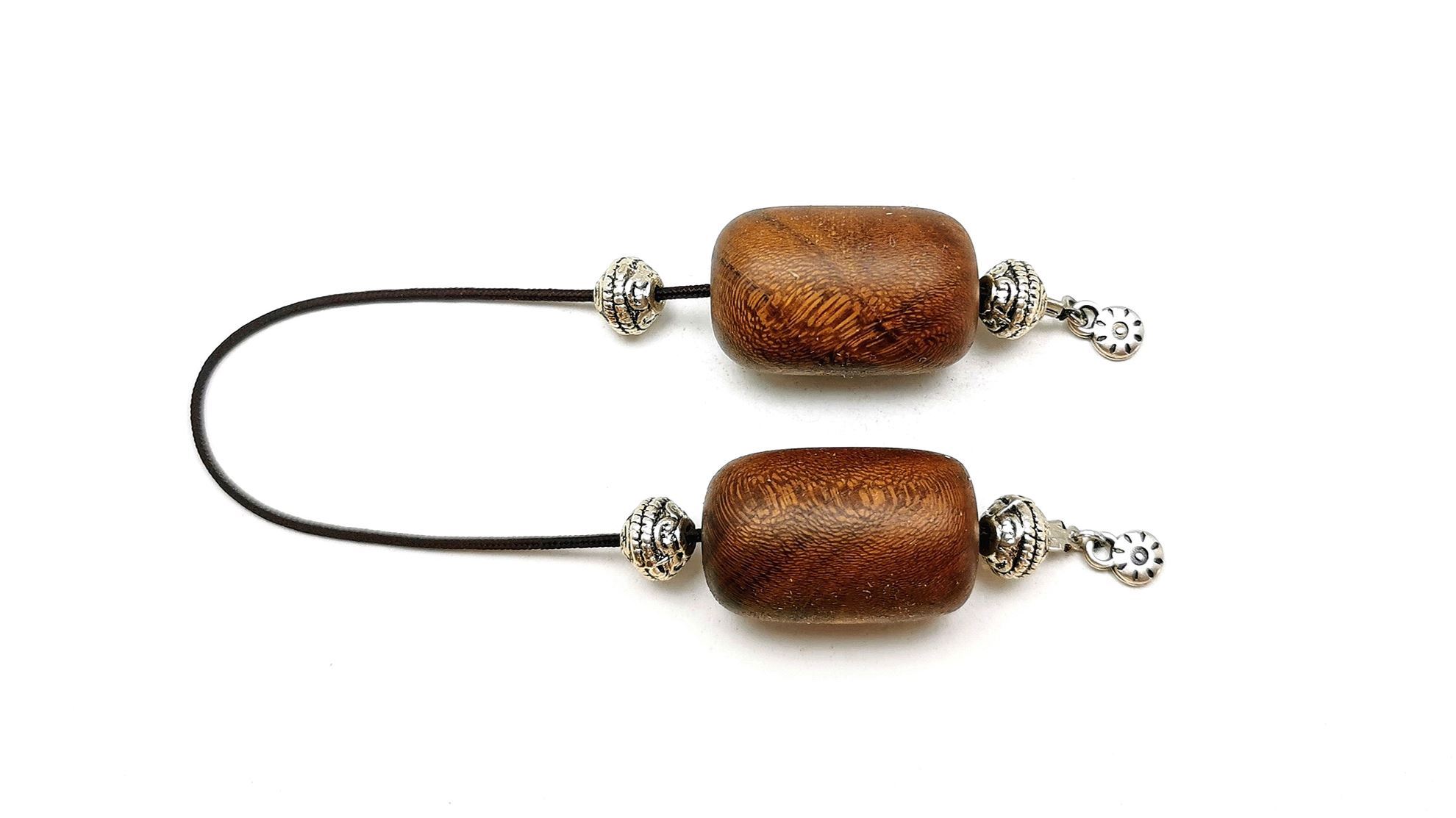 Χειροποίητο αρωματικό μπεγλέρι από Ελληνική Αμυγδαλιά, μέγεθος χάντρας 18x28mm και στολισμένο με μεταλλικά στοιχεία. Παραδίδεται σε κουτάκι και συνοδεύεται με πιστοποιητικό έντυπο που περιγράφει τη διαδικασία κατασκευής του. Τα προϊόντα μας στη σειρά ‘χειροποίητο ξύλο’ είναι όλα από Ελληνικά ξύλα που έχουν μαζευτεί από την Ελληνική ύπαιθρο, μετά τοποθετήθηκαν σε σκιερό μέρος και σκεπάστηκαν με πριονίδι για περίπου 12 έως 16 μήνες αναλόγως το ξύλο, ώστε να αποβάλουν κάθε ίχνος υγρασίας!!! Μετά αρχίζει το τεμάχισμα και η χειροποίητη επεξεργασία μίας-μίας χάντρας σε τόρνο σμιλεύοντάς την με το χέρι!!! Αφού της δώσουμε το σχήμα, προχωράμε στο φινίρισμα, αυτό σημαίνει 5 ‘χέρια’ με διαφορετικό νούμερο γυαλόχαρτου και όταν η χάντρα μας είναι έτοιμη γίνεται επάλειψη με φυσικό κερί μέλισσας και αιθέρια έλαια!!! Το δέσιμο μπορεί να είναι με απλό μέταλλο ή με ασήμι 925 αναλόγως την επιθυμία σας,με επιπλέον το κόστος του ασημιού. Το κάθε μπεγλέρι είναι μοναδικό, δεν μοιάζει με κανένα άλλο ακόμα και από το ίδιο κομμάτι ξύλου!!! Όλα αυτά για να γνωρίζει ο κάτοχος ενός τέτοιου μπεγλεριού, τι κρατάει στα χέρια του!!! Λόγω της ιδιαιτερότητάς τους, όπως αντιλαμβάνεστε, είναι περιορισμένης παραγωγής!!! Τα διαθέσιμα αυτή τη στιγμή ξύλα είναι: Ελιά – Αμυγδαλιά – Βερικοκιά – Ακακία – Δρυς – Πουρνάρι – Βελανιδιά – Κουμαριά – Σκίνος – Αγριελιά – Κουτσουπιά – Μουριά – Πορτοκαλιά – Βίδι – Ευκάλυπτος – Καρυδιά – Ιτιά – Κερασιά – Κυπαρίσσι.