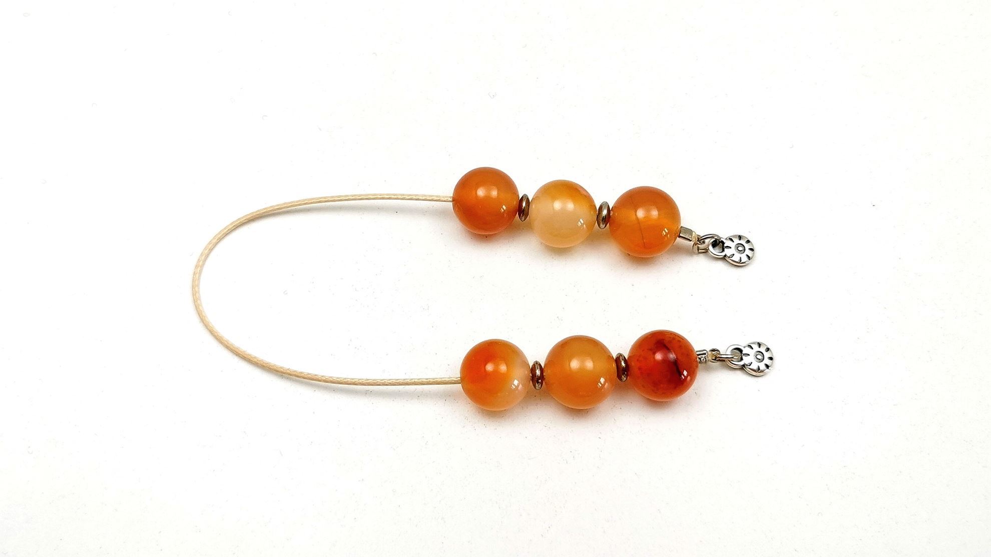 Μπεγλέρι από αχάτη,μέγεθος χάντρας 12mm,στολισμένο με μεταλλικά στοιχεία.Παραδίδεται σε ημιδιάφανο πουγκάκι οργάντζας με καρτελάκι που αναφέρει τι υλικό είναι, σε Ελληνικά – Αγγλικά.