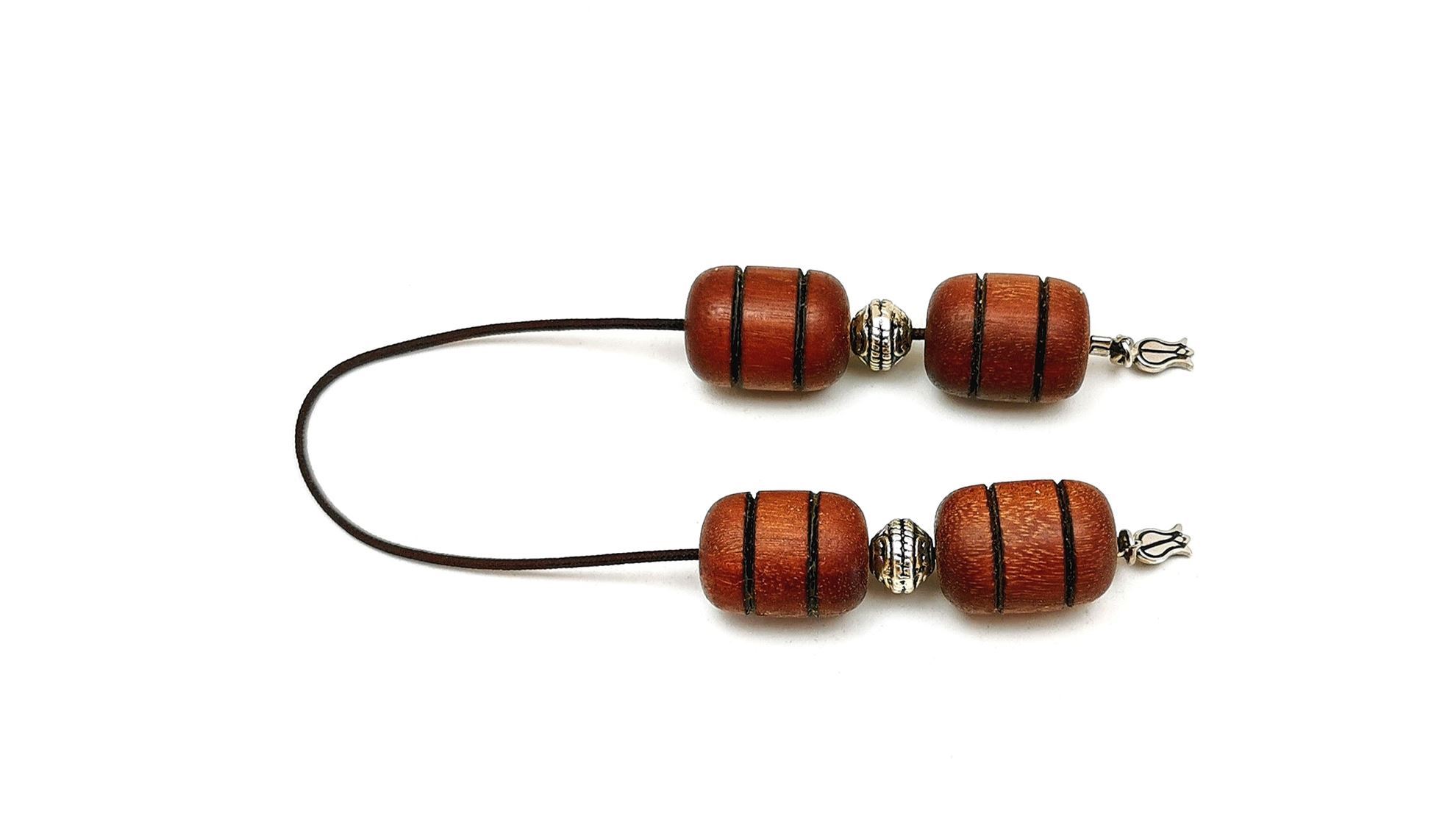 Χειροποίητο αρωματικό μπεγλέρι από Ελληνικό Ευκάλυπτο, μέγεθος χάντρας 14x19mm, δέσιμο με μεταλλικά στοιχεία. Παραδίδεται σε κουτάκι και με συνοδευτικό έντυπο που περιγράφει τη διαδικασία κατασκευής του. Τα προϊόντα μας στη σειρά ‘χειροποίητο ξύλο’ είναι όλα από Ελληνικά ξύλα που έχουν μαζευτεί από την Ελληνική ύπαιθρο, μετά τοποθετήθηκαν σε σκιερό μέρος και σκεπάστηκαν με πριονίδι για περίπου 12 έως 16 μήνες αναλόγως το ξύλο, ώστε να αποβάλουν κάθε ίχνος υγρασίας!!! Μετά αρχίζει το τεμάχισμα και η χειροποίητη επεξεργασία μίας-μίας χάντρας σε τόρνο σμιλεύοντάς την με το χέρι!!! Αφού της δώσουμε το σχήμα, προχωράμε στο φινίρισμα, αυτό σημαίνει 5 ‘χέρια’ με διαφορετικό νούμερο γυαλόχαρτου και όταν η χάντρα μας είναι έτοιμη γίνεται επάλειψη με φυσικό κερί μέλισσας και αιθέρια έλαια!!! Το δέσιμο μπορεί να είναι με ασήμι 925 ή απλό μέταλλο,αναλόγως την επιθυμία σας!!! Το κάθε μπεγλέρι είναι μοναδικό, δεν μοιάζει με κανένα άλλο ακόμα και από το ίδιο ξύλο!!! Όλα αυτά για να γνωρίζει ο κάτοχος ενός τέτοιου μπεγλεριού, τι κρατάει στα χέρια του!!! Λόγω της ιδιαιτερότητάς τους, όπως αντιλαμβάνεστε, είναι περιορισμένης παραγωγής!!! Τα διαθέσιμα αυτή τη στιγμή ξύλα είναι: Ελιά – Αμυγδαλιά – Βερικοκιά – Ακακία – Δρυς – Πουρνάρι – Βελανιδιά – Κουμαριά – Σκίνος – Αγριελιά – Κουτσουπιά – Μουριά – Πορτοκαλιά – Βίδι – Ευκάλυπτος – Καρυδιά – Ιτιά – Κερασιά – Κυπαρίσσι.