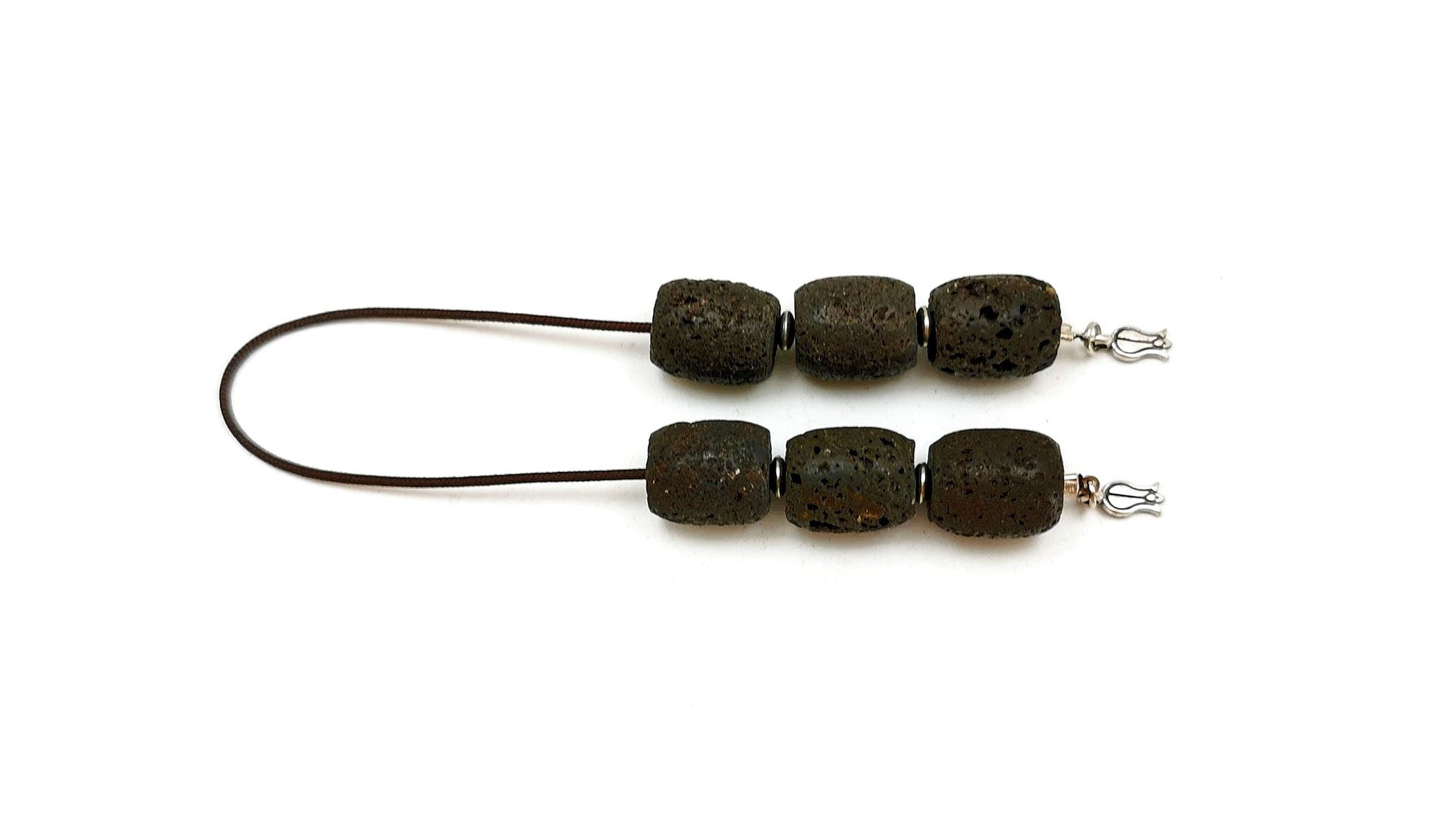 Μπεγλέρι από λάβα,μέγεθος χάντρας 12χ15mm,στολισμένο με μεταλλικά στοιχεία.Παραδίδεται σε ημιδιάφανο πουγκάκι οργάντζας με καρτελάκι που αναφέρει τι υλικό είναι, σε Ελληνικά – Αγγλικά.