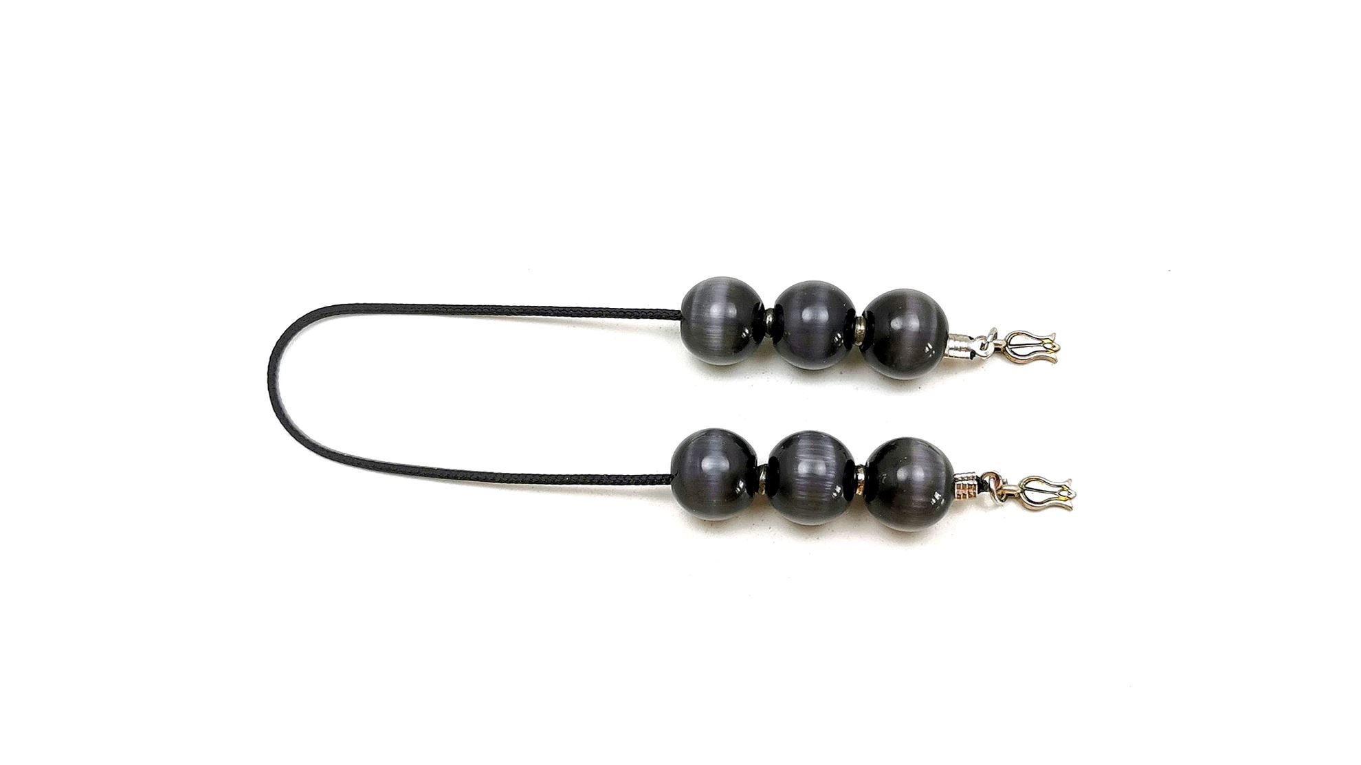 Μπεγλέρι από μάτι γάτας,μέγεθος χάντρας 12mm,στολισμένο με μεταλλικά στοιχεία.Παραδίδεται σε ημιδιάφανο πουγκάκι οργάντζας με καρτελάκι που αναφέρει τι υλικό είναι, σε Ελληνικά – Αγγλικά.