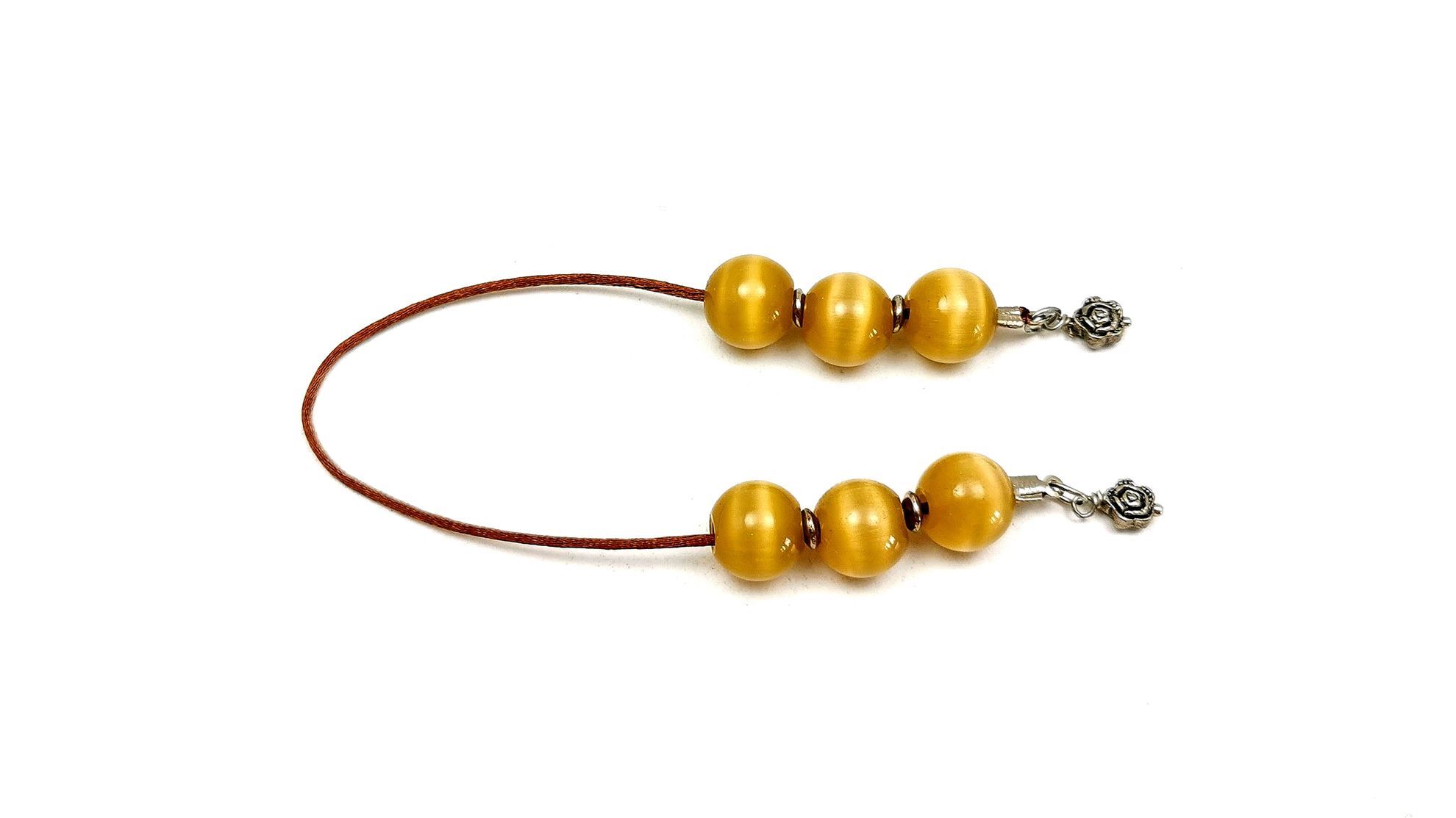 Μπεγλέρι από μάτι γάτας,μέγεθος χάντρας 12mm,στολισμένο με μεταλλικά στοιχεία.Παραδίδεται σε ημιδιάφανο πουγκάκι οργάντζας με καρτελάκι που αναφέρει τι υλικό είναι, σε Ελληνικά – Αγγλικά.