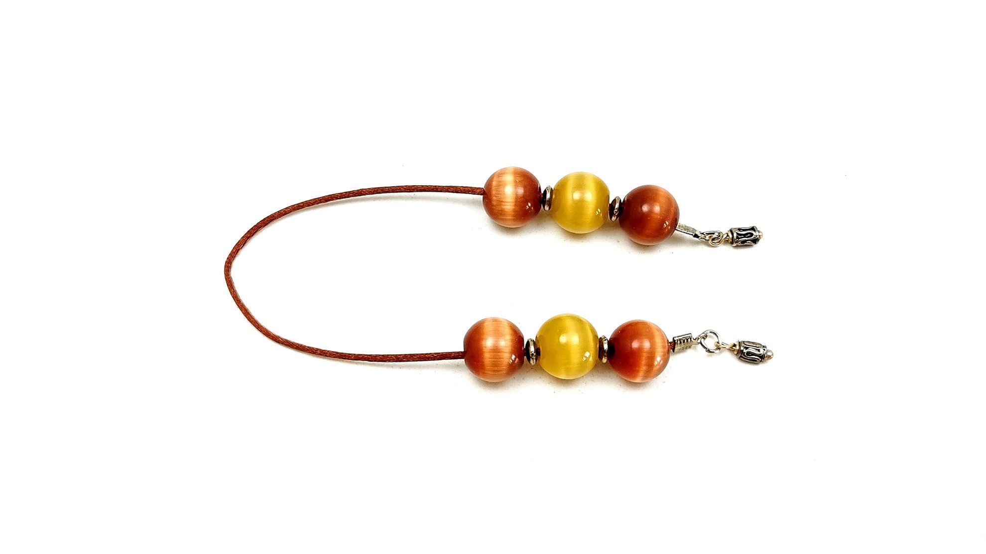 Μπεγλέρι από μάτι γάτας,μέγεθος χάντρας 12mm,στολισμένο με μεταλλικά στοιχεία.Παραδίδεται σε ημιδιάφανο πουγκάκι οργάντζας με καρτελάκι που αναφέρει τι υλικό είναι, σε Ελληνικά – Αγγλικά.