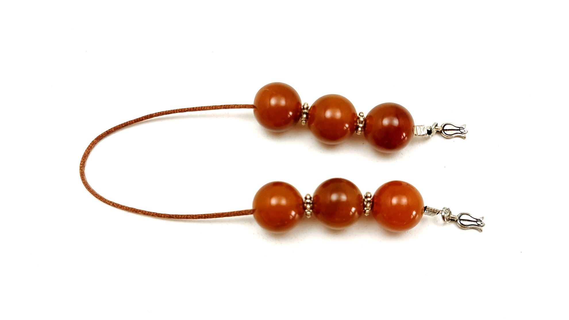 Μπεγλέρι από τεχνητή ρητίνη,μέγεθος χαντρών 12mm,στολισμένο με μεταλλικά στοιχεία.Παραδίδεται σε ημιδιάφανο πουγκάκι οργάντζας με καρτελάκι που αναφέρει τι υλικό είναι, σε Ελληνικά – Αγγλικά.