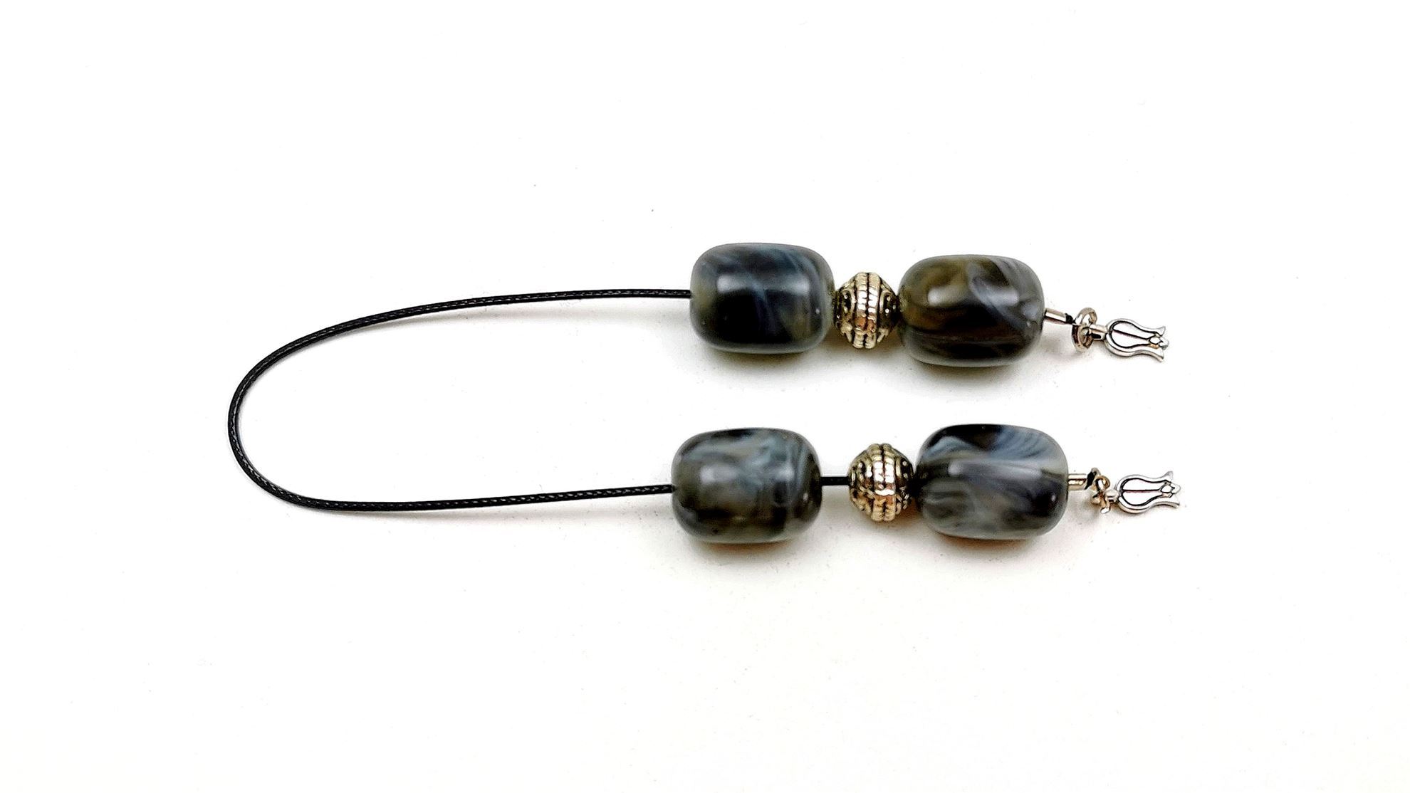 Μπεγλέρι από τεχνητή ρητίνη,μέγεθος χαντρών 12x16mm,στολισμένο με μεταλλικά στοιχεία.Παραδίδεται σε ημιδιάφανο πουγκάκι οργάντζας με καρτελάκι που αναφέρει τι υλικό είναι, σε Ελληνικά – Αγγλικά.