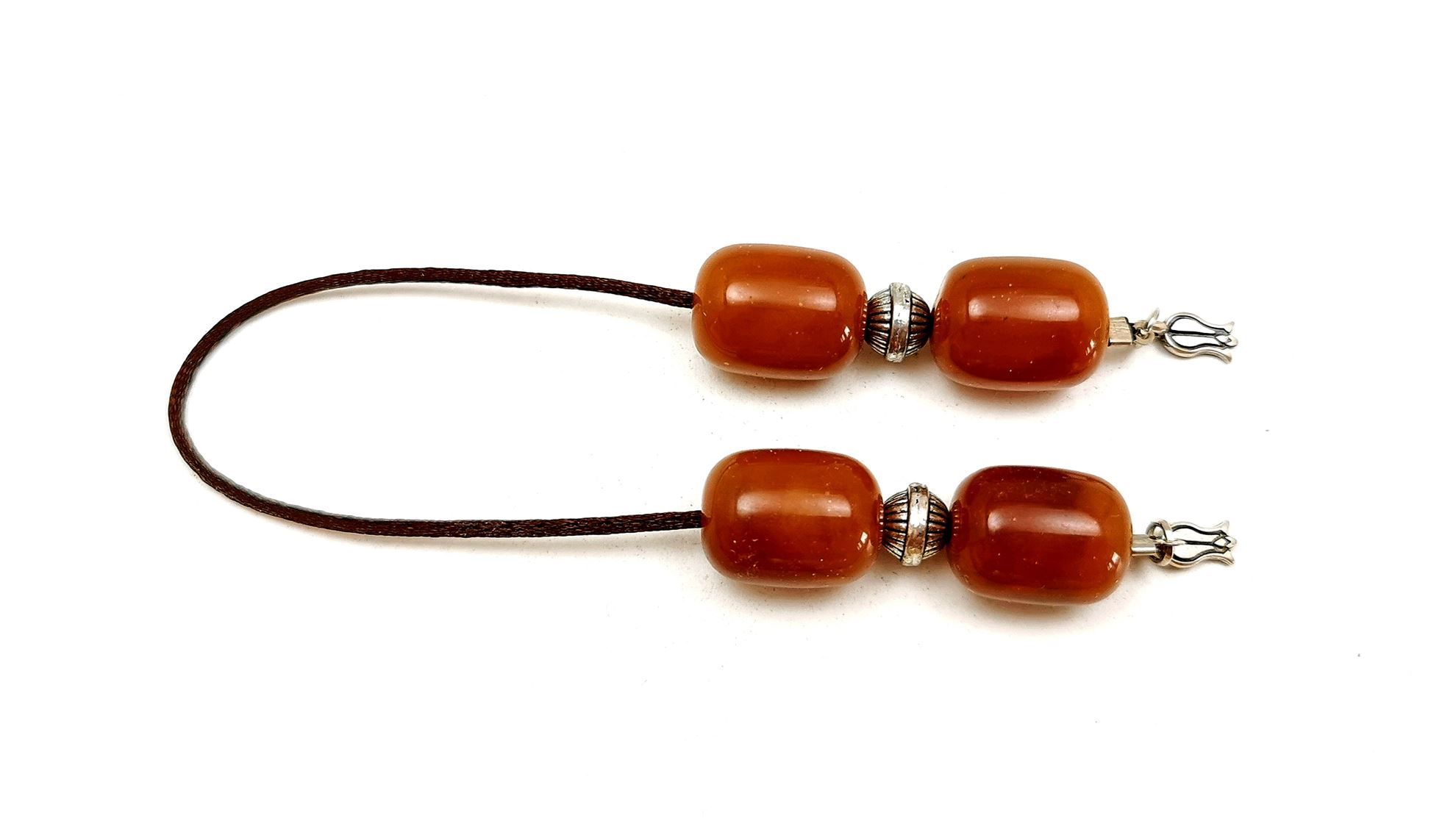Μπεγλέρι από τεχνητή ρητίνη,μέγεθος χαντρών 12x16mm,στολισμένο με μεταλλικά στοιχεία.Παραδίδεται σε ημιδιάφανο πουγκάκι οργάντζας με καρτελάκι που αναφέρει τι υλικό είναι, σε Ελληνικά – Αγγλικά.